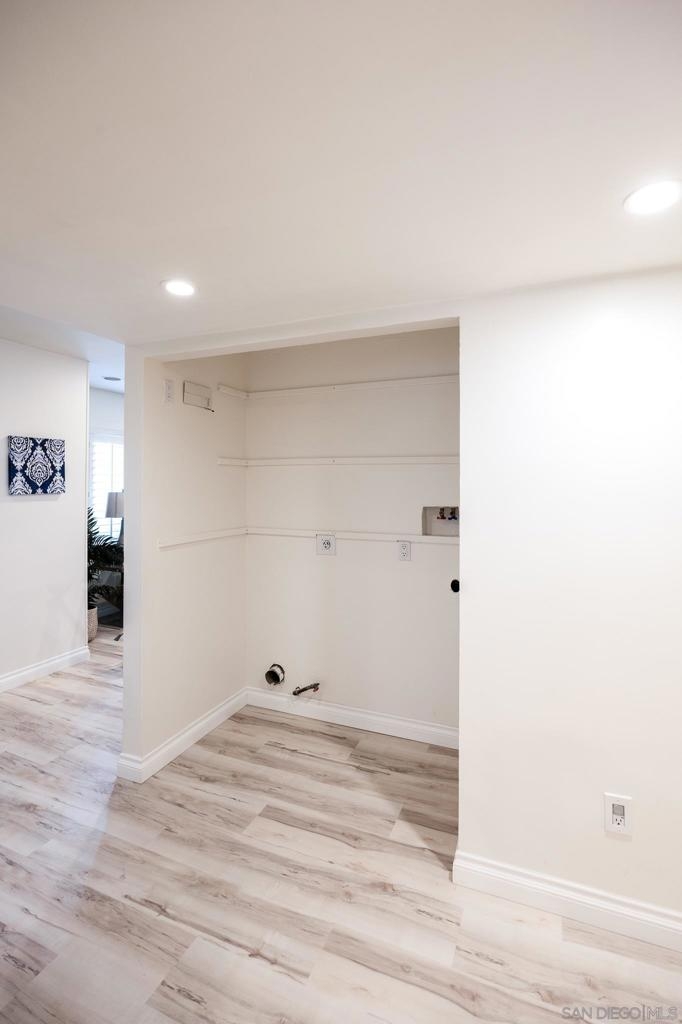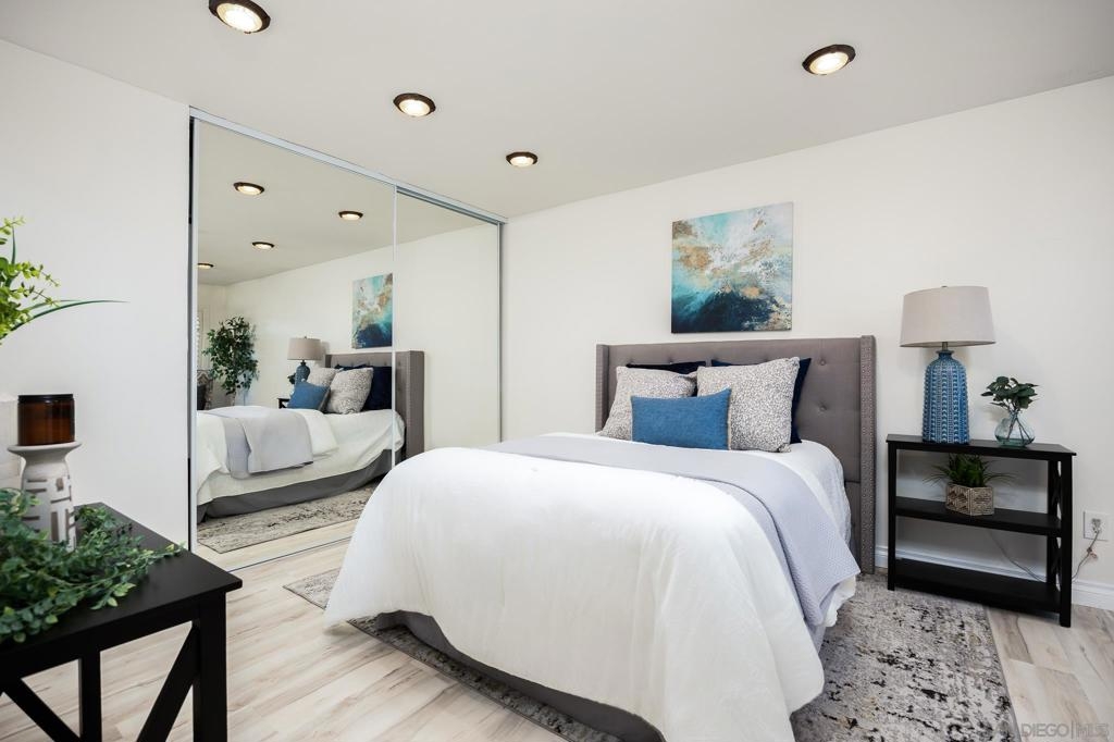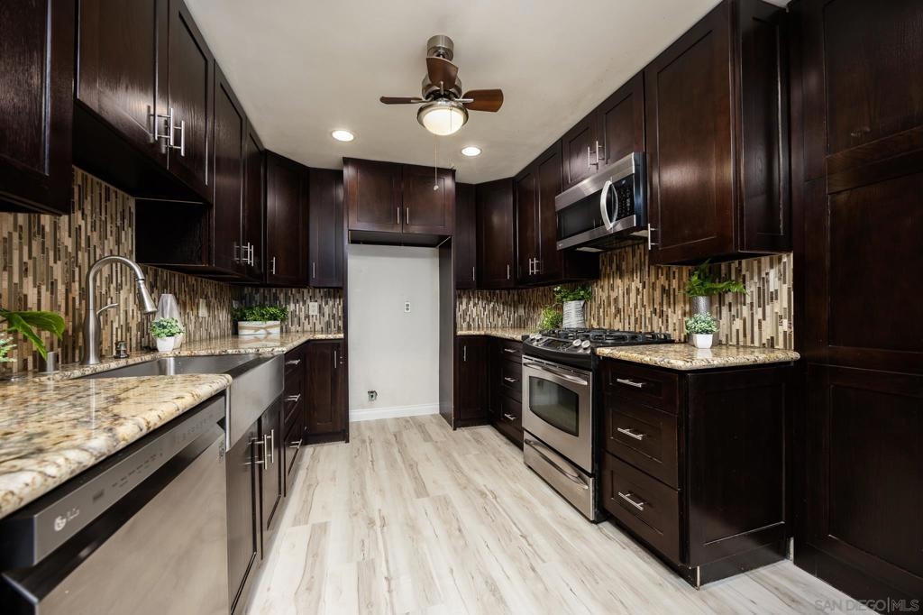 VA approved complex! Single-story 3 bed, 2 bath ground floor condo in Riderwood Gardens. LVP flooring throughout, remodeled bathroom, new thermostat. Detached private one-car garage #83 (not shared) with ample attic space and a built in drop down ladder. One designated parking space #15 located directly in front of building. Central heat & AC. The spacious interior includes an updated kitchen, in-unit laundry hookups (closet), and private front patio. The Riderwood Gardens community features two swimming pools, three playgrounds. Enjoy walkable access to a grocery store, pharmacy, fitness center, and multiple restaurants. Nearby amenities also include the YMCA, Santee Sportsplex, Town Center Park, and top-rated schools like Santana High and Rio Seco Middle & Elementary—all less than a mile away.