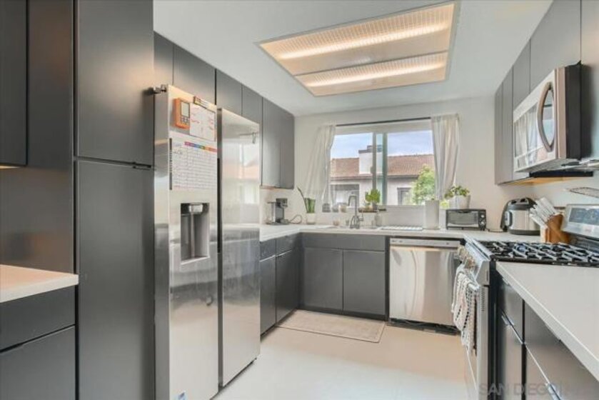 Nestled in one of Santee’s most desirable gated communities, this beautifully updated 2-bedroom, 1.5-bath upper-level unit offers the perfect blend of comfort, style, and convenience. Step into a bright and open living space featuring a cozy fireplace, plantation style shutters, and in-unit Washer and Dryer. The kitchen is tastefully remodeled with Corian countertops, stainless steel appliances, and ample cabinetry—ideal for cooking and entertaining. Enjoy durable tile and laminate flooring throughout, a newer HVAC system, and dual-pane energy-efficient windows. The primary bedroom boasts custom built-in closets and an entertainment center, while the modern bathrooms feature updated tile and finishes. You'll love the private balcony entrance—perfect for relaxing or entertaining guests. The unit includes two parking spaces: one detached enclosed garage and one assigned outdoor space, both conveniently close to the unit. Community amenities include a sparkling pool, playground, and landscaped common areas. Located near top-rated schools, the YMCA, Santee Sportsplex, the San Diego River, Town Center Park, great shopping and dining options, and with easy access to the 52 and 67 freeways—this home truly has it all!
