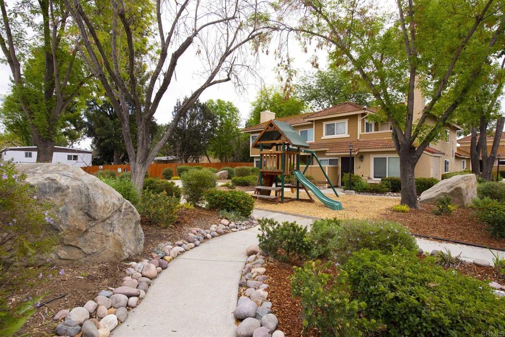 Pride of ownership in this 2 bedroom 2 bath condo. Private location, open floor plan with laminate flooring in kitchen and entry way. Kitchen was updated in the past few years, fireplace in living room. Spacious bedrooms, main bedroom has large walk in closet and slider to private patio. New interior paint and baseboards. Stackable washer /dryer included. Nice size storage unit included & 2 parking spaces. Community pool, playground, picnic area & basketball area.