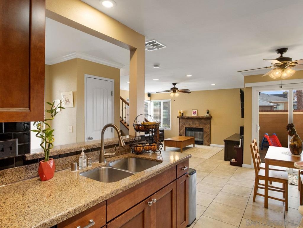 Stunning townhome designed w/ maximum livable space making it feel like a detached! Highly upgraded throughout starting the kitchen with granite counters, beautiful cabinets & dual pane windows . Both bathrooms have vanity w/ granite countertops, tile surround & glass enclosures. Large storage closet underneath the stairs w/ a private patio off the dining room. Located centrally to freeways, shops & restaurants. Great amenities including the newly renovated Mast Park and Santee Lakes. This will go fast! Complex Features: , Other Fees: 0 Sewer: Sewer Connected Topography: LL