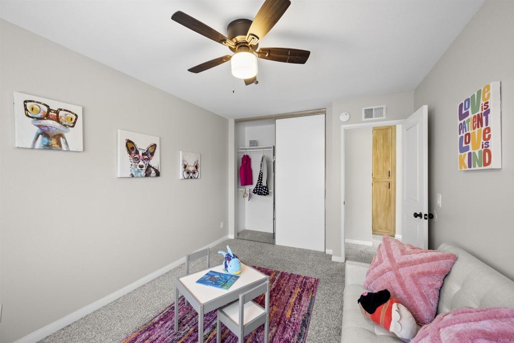 Welcome to Riderwood Terrace! If you’ve been searching for a condo that lives like a home, your search ends here. This spacious 3-bedroom, 2.5-bath residence offers 1,294 sq. ft. of well-designed living space in the highly desirable Riderwood Terrace community. A well maintained complex consisting of 123 units with 4-5 units per building. The open-concept living room features a cozy fireplace and flows seamlessly onto a private balcony—perfectly sized for a BBQ, bistro table, and chairs. The recently remodeled kitchen boasts a stylish butcher block bar top and an open layout, making it ideal for entertaining. Upstairs, you’ll find generously sized bedrooms, private in-unit laundry, and ample storage throughout. One of the standout features of this home is the oversized 2-car attached garage—professionally outfitted with CrossFit-grade rubber flooring and a full fitness system. Whether you’re a fitness enthusiast or just need extra storage, this garage is a game-changer. All appliances convey, and the home is move-in ready. As a bonus, Riderwood Terrace offers a community pool with stunning views from the top of the neighborhood. The location is unbeatable—close to freeways, shopping, dining, and more. HOA includes: Common area maintenance Roof coverage Monthly water bill which includes gas for hot water. This is your chance to own a rare 3 bedroom condo in one of San Diego’s most convenient and charming communities. Don’t miss it!