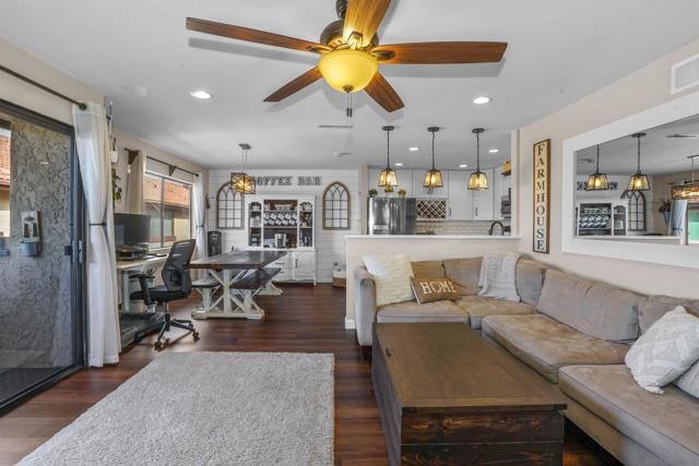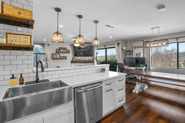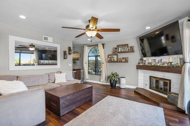 Some of the best views Santee has to offer from watching the 4th of July fireworks on your own private balcony to gorgeous scenic views while sipping on your morning coffee. Welcome to the beautiful end unit within the private Riderwood Terrace community. You are just minutes way from Costco, restaurants, breweries, parks, and freeway entrances and so much more. The home itself is truly a gem where no expense was spared. THIS IS NOT A FLIP. The owners themselves spent years defining every corner on this home truly making it a dream. This home is perfect for any first-time buyer or anyone looking to downsize. The owner spent the last 4 years perfecting this farmhouse style home upgrading every feature from flooring to fixtures. The moment you walk in you will be greeted to an open floor plan with stunning mountain views and the perfect cross breeze on those warm summer days. This home will not last long.
