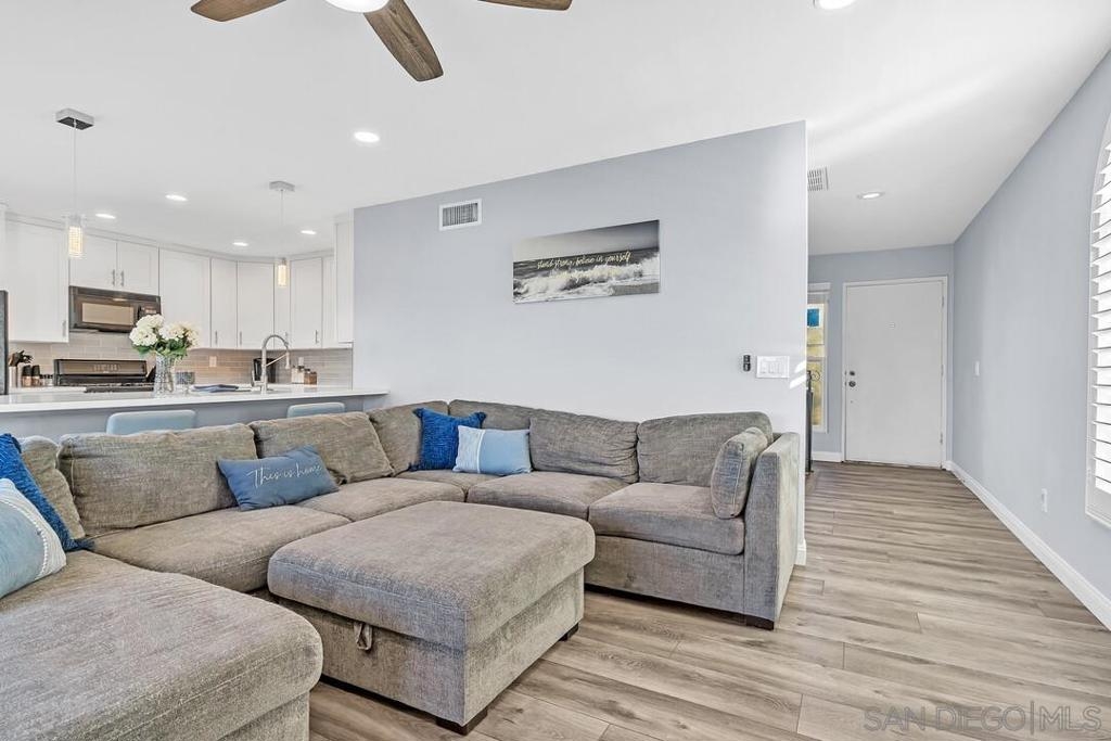 Check out this highly desired property at the Riderwood Terrace in Santee! This spacious 2-story townhome with a beautiful remodeled kitchen features brand new cabinets, quartz countertops, custom lighting and new flooring. Paid solar panels will help keep utilities low. The end unit location boasts gorgeous views of the city & mountains. Pool area and a dog park with lots of guest parking make this complex a perfect place to live. Close to schools, shopping and freeways. Complex is VA/FHA approved.