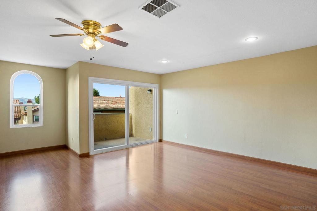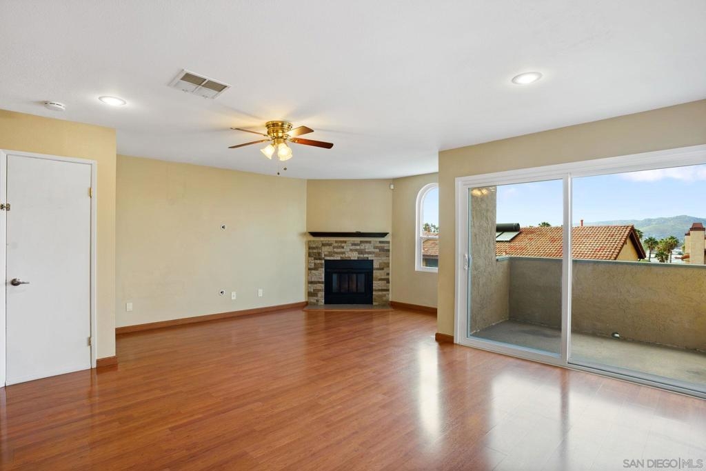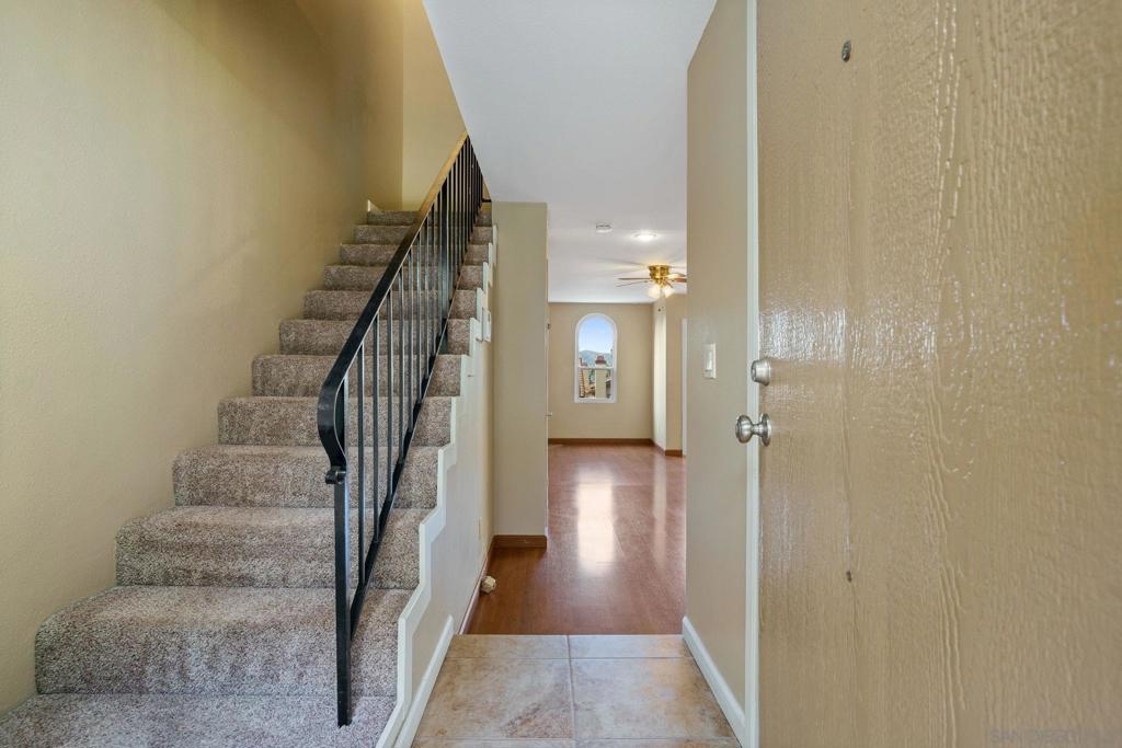 Beautiful 2-Story townhome located in the highly sought after Riderwood Terrace Community in Santee. This rarely available townhome boasts 3 bedrooms, 2 1/2 baths and features direct access to an oversized 2-car garage with added bonus space that can be used for extra storage, workout area, or office, laminate wood floors and tile throughout the downstairs, carpet on the stairs and upstairs/bedrooms, kitchen has Corian counters and ample cabinet space, in bathroom laundry, fireplace in living room, central AC/Heat, and a balcony with beautiful mountain views. Complex features a beautiful pool that has great views of the fireworks on the 4th of July, along with a dog park at the community entrance. This home is close to shopping and restaurants.