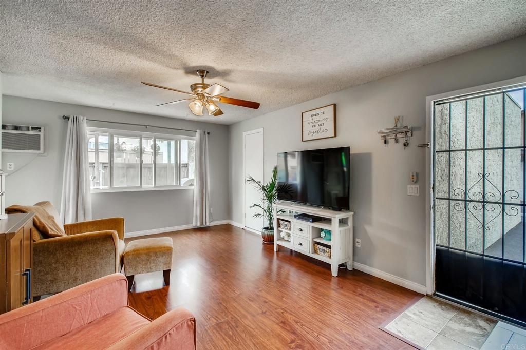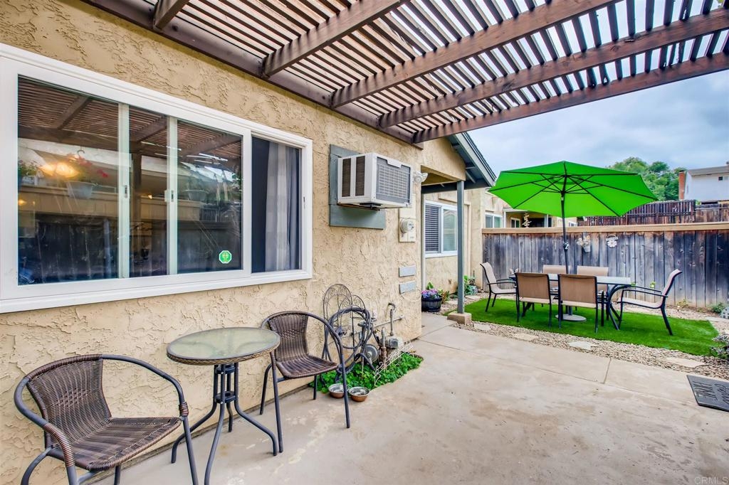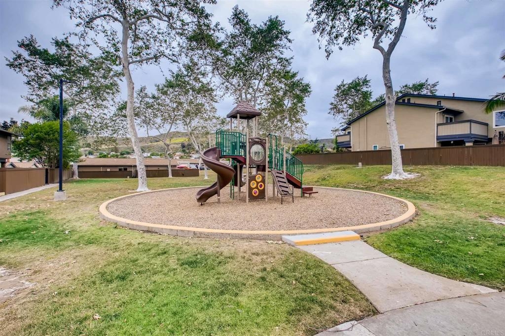 This nicely maintained, freshly painted, single story, with no one above you home, features 2 bedrooms and 1 full bathroom. It comes with an attached 1 car garage that has direct access to the home and 1 additional assigned parking spot. Enjoy the fenced in yard and covered patio, great for relaxing or entertaining. Newer windows, tile and laminate wood flooring throughout. Washer, dryer and all the stainless steel kitchen appliances are being included. This highly desirable community also features 2 pools and multiple play ground areas. Conveniently located close to schools, shopping, hiking trails, a dog park, city parks, restaurants, a drive in movie theater and Santee Lake. Professional photos coming soon!