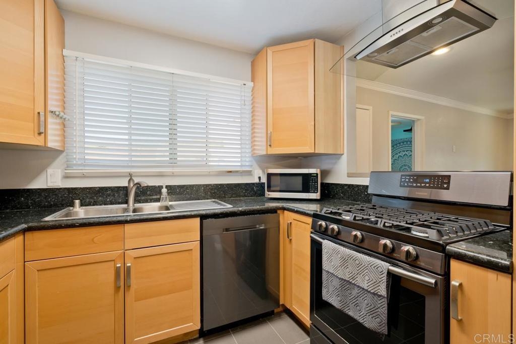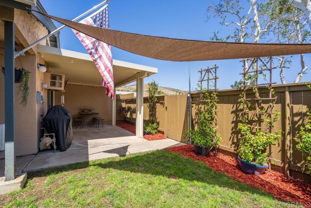 Welcome Home to this upgraded 3Bedroom condo with private yard and laundry. These homes have a duplex feel the way they are situated and this one in particular is in a prime spot with direct access to the massive green belt. Newer tile floors through out the home. Custom cabinets with granite counters. Upgraded bathroom, newer patio cover landscaped private yard and much more. The community boasts playgrounds, picnic areas and 2 pools.