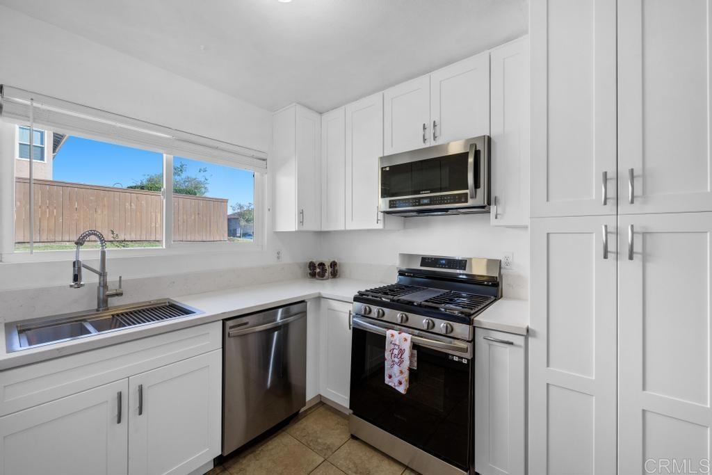 Seldom found 2/1 in Santee with private yard, detached 1-car garage and additional parking spot. HOA covers water. Close to playground and pool, walking distance to Woodglen Vista Park with a dog park, schools (Elementary/Junior High/High School). Home has vinyl flooring. Recent upgrades include new kitchen featuring a dishwasher, quartz countertops, gas range and built-in microwave. Tub/shower refinished and a new bathroom vanity installed. A fantastic home that offers a comfortable and welcoming living space.