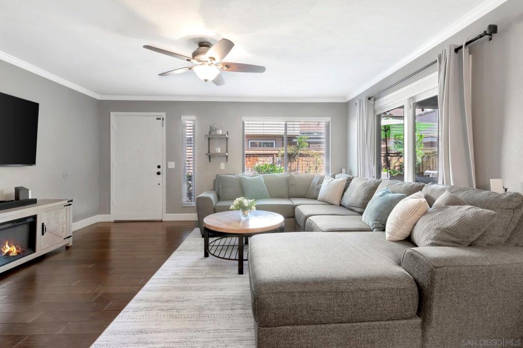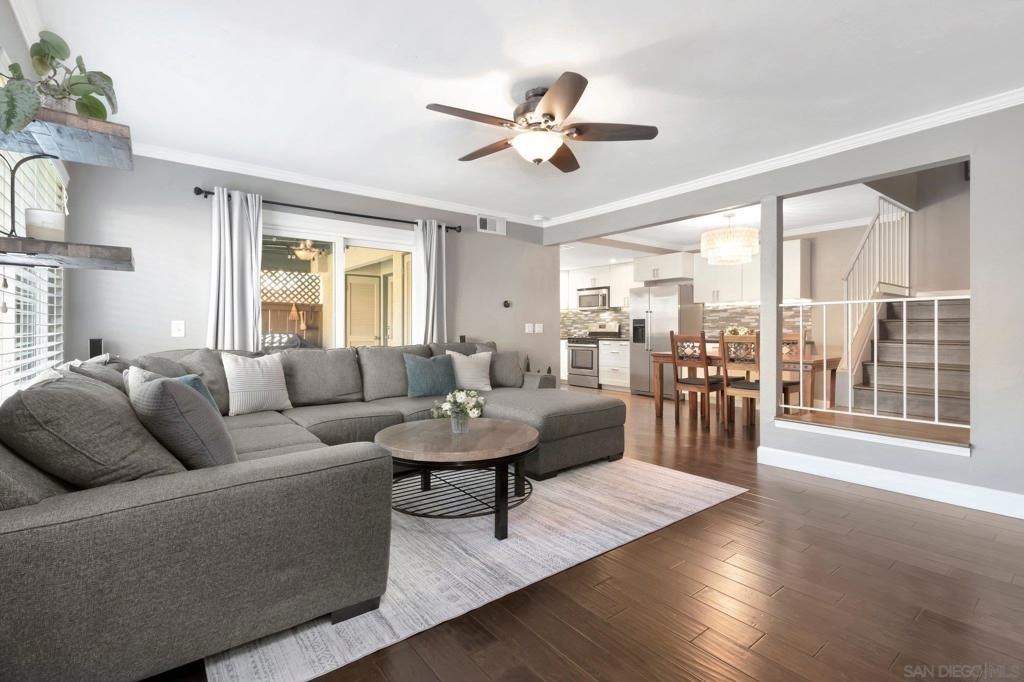 Stunning Upgraded Townhome in Riderwood Village! Don’t miss this beautifully maintained end unit in Riderwood Village, featuring over $50,000 in recent upgrades! This spacious townhome offers 3 bedrooms and 2.5 baths, providing ample room for everyone. Experience energy efficiency with 20 owned solar panels that significantly reduce your energy costs. The brand-new windows and sliding doors enhance natural light and improve overall energy performance. Stylish custom-made closet barn doors add character and functionality to your master bedroom, while attic storage offers extra room for your belongings. The detached two car garage is fully insulated, drywalled and freshly painted, adding comfort and convenience for vehicle storage or craftsmanship. Inside, you’ll find wood laminate floors, granite countertops, updated lighting fixtures, and a beautifully remodeled master bathroom. Crown molding and stunning colors complete the modern look of this inviting home. Plus, you'll enjoy recent stainless steel appliances and recent water heater upgrades. The exterior features a beautifully landscaped front yard with low-maintenance artificial turf and a cozy private outdoor sitting area. Community amenities include two pools and three playgrounds, a wonderful place for family gatherings or just a relaxing day by the pool. Make this upgraded townhome your new oasis today! Conveniently located near Santee Lakes with easy access to SR67, SR125, and SR52, this townhome is ideal for commuters. With PUD status, both FHA and VA financing are welcomed!