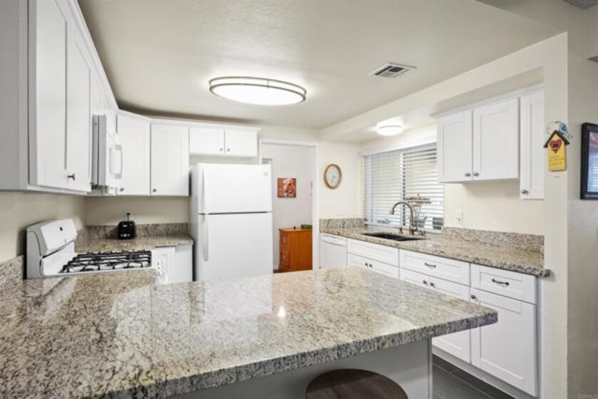 Nestled in the desirable Riderwood Village community of Santee, this townhome offers 3BR, 2.5BA and 1268 sf of comfort and charm. From the abundance of natural light in the open living room, to the tastefully updated kitchen featuring newer cabinets, granite countertops, newer sink and lighting, new microwave, as well as the porcelain tile floor which expands to the dining area and downstairs bathroom. The bathrooms have been modernized to include newer vanities, exhaust fans, flooring, lighting, paint and more. Serenity awaits in the park-like setting, while the balcony provides a peaceful retreat. Relax in your private, generously sized, enclosed yard. Enjoy an attached 2-car garage with laundry convenience. Community amenities include pools, playgrounds and green spaces. Located close to schools, shopping, dining, freeways and Woodglen Vista Park.
