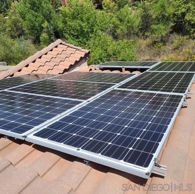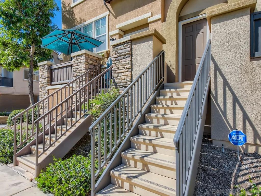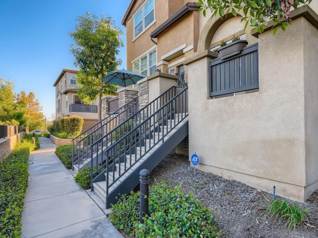 Stunning 4 bed, 4 bath, 1977sf home located in the highly desirable Riverwalk neighborhood in the heart of Santee! The home has a 12 panel Sunmodule SOLAR SYSTEM that is **PAID IN FULL**. The floor plan is in high demand and is the only one like it on the market currently. This rare listing is also in the best location in the development along a natural green belt making it very private. Wake up each morning and enjoy the amazing views from your private porch of mountains and surrounding area as the sun rises from the East. The modern, open floor plan has a spacious living room, dining area, breakfast nook, & kitchen, boasting granite countertops and stainless steel appliances on the main level (see floor plans). There is also a bedroom and bathroom on the main level, as well as a patio for outdoor space perfect to BBQ. Upstairs you’ll find two bedrooms, each with its own bathroom, including one of two master suites. The upstairs master suite has two closets, one is a large walk-in closet, and the master bathroom has two sinks and the other closet. The master suite on the first floor is expansive and can be multipurpose -- good for multigenerational living or ideal as a media room, office, playroom, fitness room, or guest suite. The first floor also houses the laundry room with ample cabinet space and another closet with deep storage under the stairs. The 2.5 car garage is perfect to fit your vehicles and plenty of storage room. This beautiful home is move in ready. Complex Features: ,,,, Equipment: Dryer,Fire Sprinklers,Garage Door Opener, Washer Sewer: Sewer Connected Topography: LL
