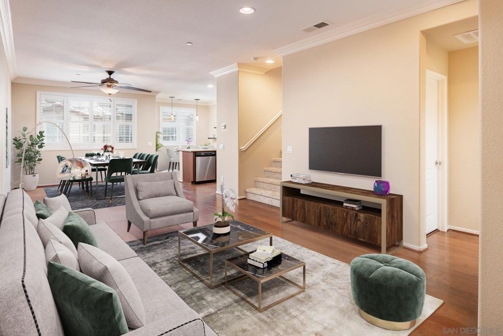 Come home to this beautiful, move in ready, 4 bedroom and 4 FULL bath home, located facing the greenbelt in the Riverwalk community of Santee. Highlights include PAID SOLAR, solid flooring on main level, new carpet installed (March 2023) in all but one bedroom, tiled backsplash in the kitchen, plantation shutters, crown molding and private suite on the lower level. Close to Cameron Family YMCA, Sportsplex, trails, shopping and restaurants. All appliances convey. VA approved community.