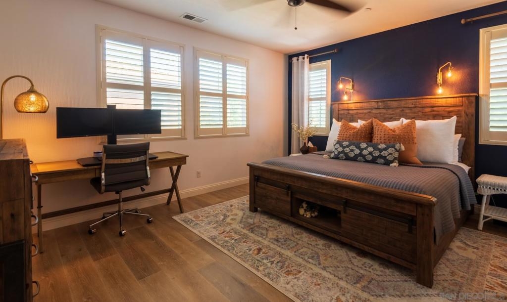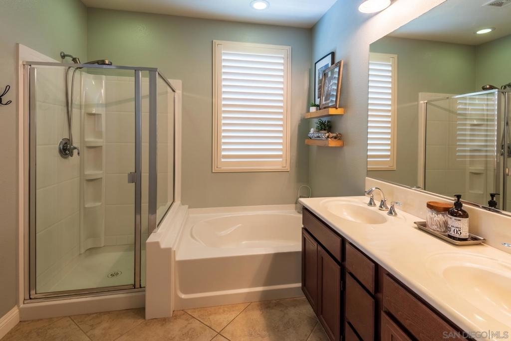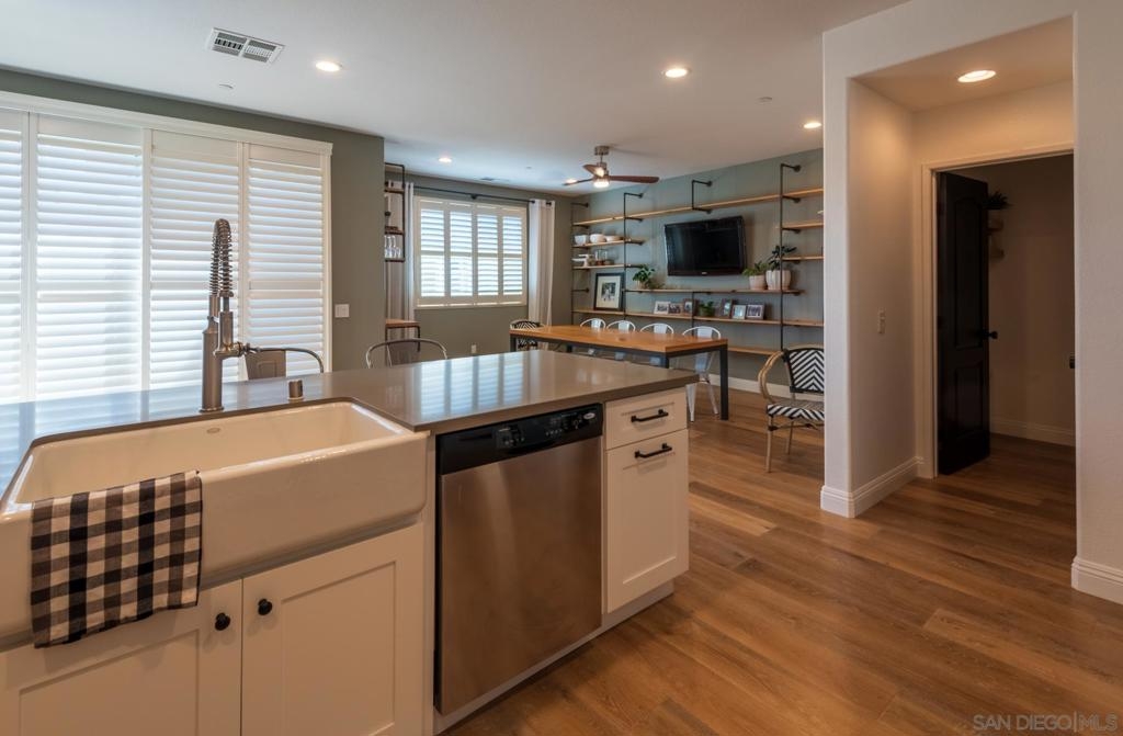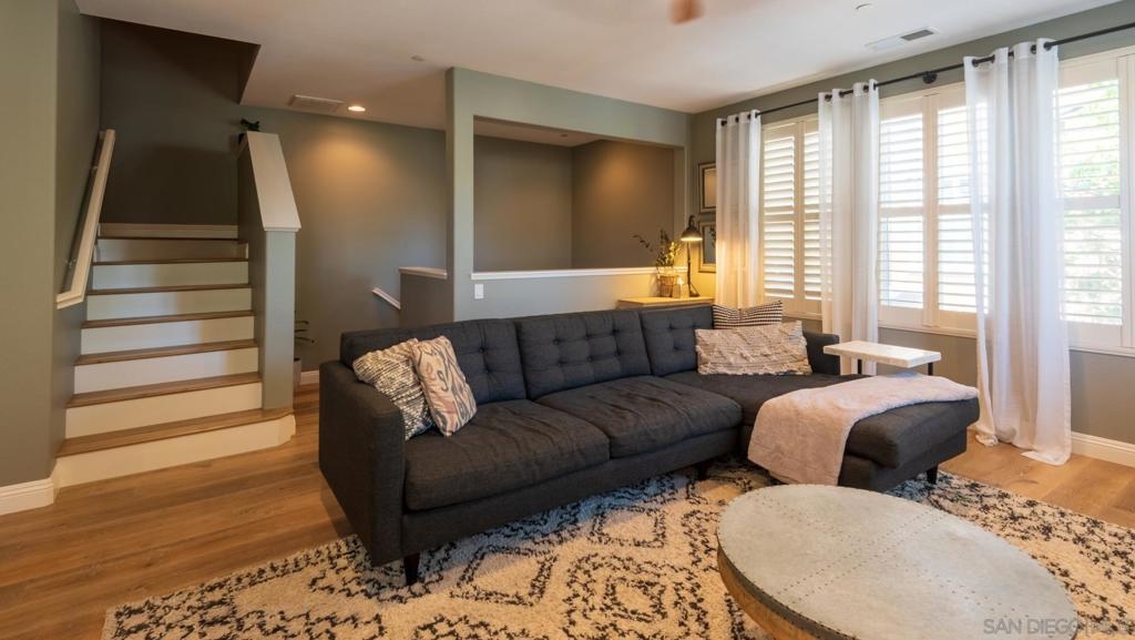 Don't miss this rarely available Riverwalk 4 bedroom, 3-1/2 bathroom home that shows like a model! This coveted corner location is the largest in the community as one of the "book-end" floorplans. Being on the quiet side next to the lush greenbelt provides a lot of privacy. Enjoy outdoor space on the front deck or the balcony off of the kitchen with views of the hills in the distance. This home has many upgrades, including: high end laminate flooring, quartz countertops, white shaker soft close cabinets, Kohler farmhhouse sink, designer paint, black hinges and knobs, plantation shutters throughout, tasteful window coverings (which convey), custom shelving, tankless water heater and walk-in pantry! SEE SUPPLEMENT for more! There's more to share about this amazing home! You will enjoy a light & bright open floorplan on the main living area (living room, kitchen, dining room, breakfast area & half bathroom). Downstairs (at the garage level) there are 2 bedrooms & a full bathroom. The top floor features the master bedroom & bathroom plus another bedroom with an ensuite bathroom. The kitchen was remodeled in 2020 & laminate flooring installed in the main living area, stairs and upstairs. Berber carpet replaced in the downstairs bedrooms in 2020. Riverwalk features a pool, spa, tot lot & rec center! This is a wonderful central Santee neighborhood where you can walk to Rio Seco Elementary School, & Santana HS. Right across the street is the YMCA, Santee Aquatic Center, Community Park & Sportsplex. This family friendly community offers fun events in the park, including live concerts & fireworks in the Summer. Low HOA & No Mello Roos! Welcome Home! Sewer: Sewer Connected Topography: LL