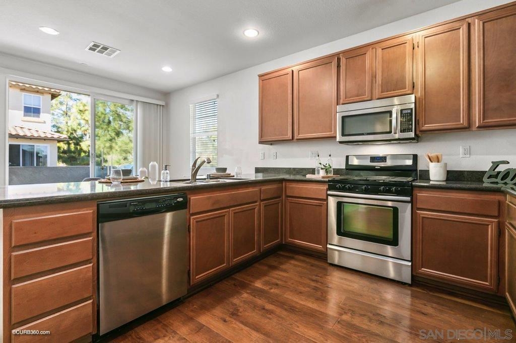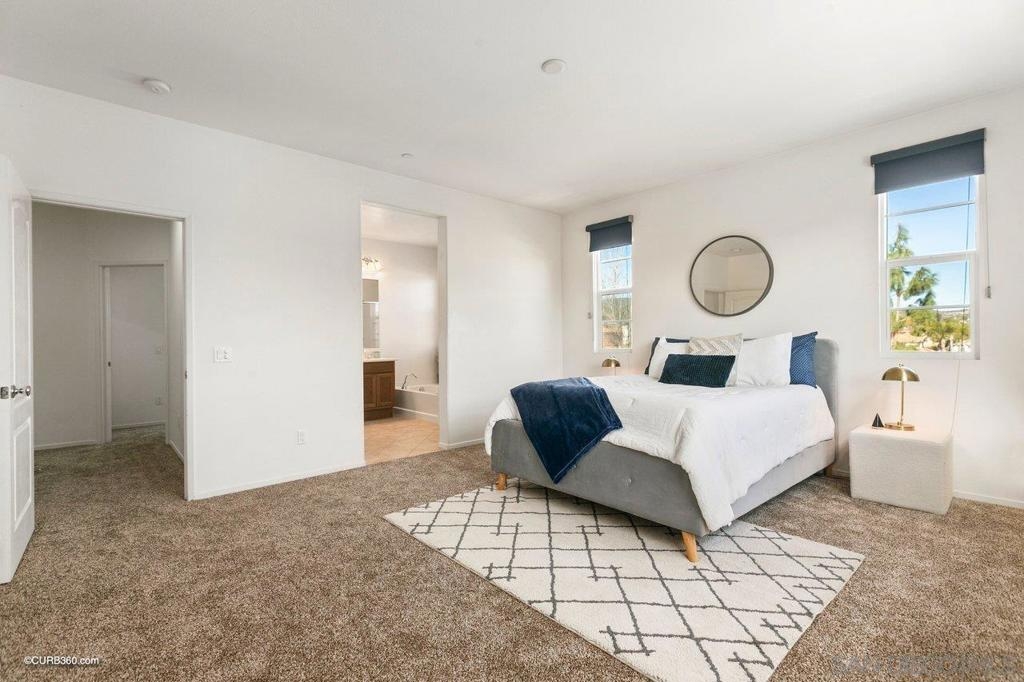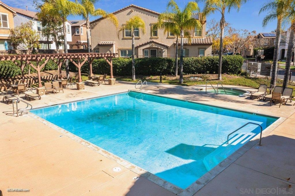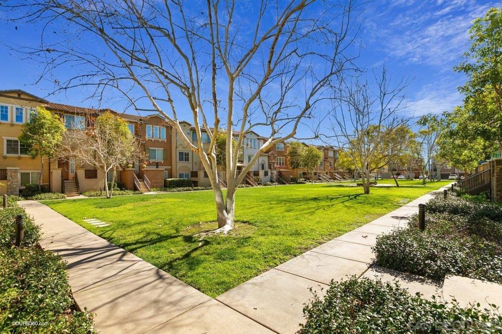 Corner unit over looking tree-lined grassy park, perfect for pets! Welcome to 10189 Little Leaf Lane 1st time ever on the market - original owners pride of ownership is evident throughout. LARGE 2039sf townhome located within the highly coveted Riverwalk community. A very short distance to two public schools, deluxe/full-featured YMCA & shopping/restaurants nearby the trolley station! This homes premier corner lot offers you extra windows - very bright with tons of natural light pouring into every room! Having 2 bedrooms downstairs & 2 up, allows flexibility for work-life-family balance! Brand new carpet, with a 5 year warranty, makes this home move-in ready. Complete with a patio area off of the front door and a second outdoor space off of the kitchens breakfast nook! Enjoy an oversized attached two-car garage conveniently located adjacent to guest parking spaces! Low HOA fee offers open green-space, pool/spa, clubhouse, playground, monitored permit parking and a PRIME location!