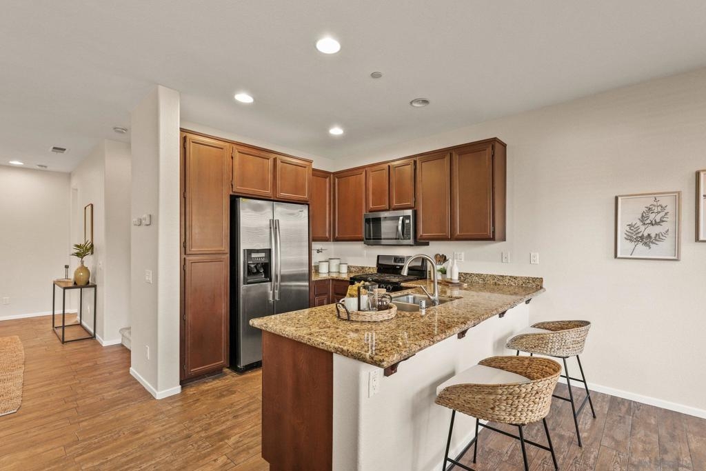 Charming townhome located within the Riverwalk complex in Santee. Enter this three story retreat to find a light and bright floor plan with an abundance of natural lighting throughout and the primary bedroom on the first floor! This turnkey retreat features: a freshly painted interior, an open concept kitchen with stainless steel appliances, wood cabinetry and bar seating, a spacious primary bedroom with a walk-in closet and balcony, modern bathroom vanities, in-unit laundry, and so much more! The property also boasts an attached two-car garage and small seating area by the front door. The Riverwalk Complex allows its residents access to the community pool and playground, while being situated near the YMCA, Sportsplex, USA Park, shopping and restaurants! Don't wait -- book a tour before it's gone. Equipment: Dryer,Garage Door Opener Sewer: Sewer Available Topography: LL