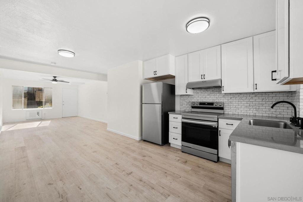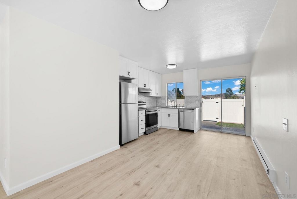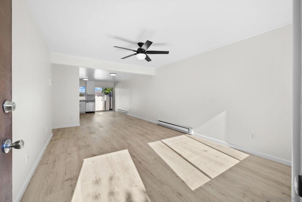 Introducing an absolutely stunning two-bedroom, one-bath condo, that offers rare to find privacy with no neighbors above or below the unit along with an oversized and gated patio. The privacy and convenience continues with direct access to two assigned parking spaces through the patio and also offers a short walk to the community pool, trails, and several prime areas for outdoor living. Step inside to the fully renovated space with modern finishes and stylish upgrades offering stunning appeal while maximizing the layout. The open-concept living area features sleek flooring, fresh paint, and an abundance of natural light, creating a warm and inviting space that pleasantly greets you as soon as you enter. The updated kitchen boasts new appliances, contemporary cabinetry, and beautiful countertops, making it a chef’s dream. Both bedrooms are generously sized for practicality and the renovated bathroom offers a clean, modern look with high-quality fixtures. Situated in the highly sought after “Sunset Greens” community of West Santee, lakes, mountains, stores, restaurants, and all the essentials are only minutes way. This gem of a condo is move-in ready and perfect for those looking for comfort and convenience in a prime location. A PHENOMENAL opportunity to own in San Diego awaits. Come have a look.