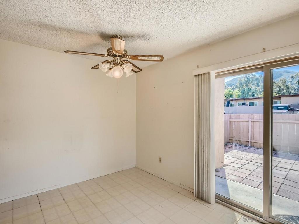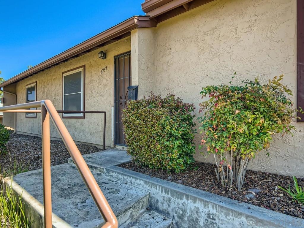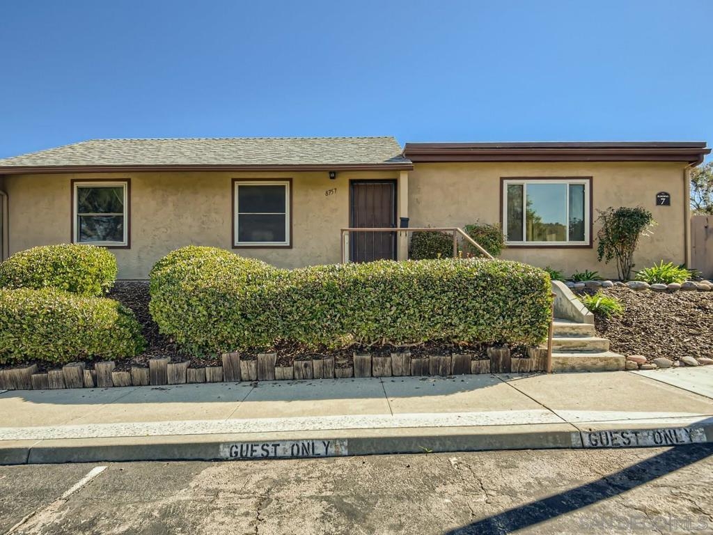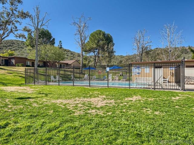 Sunset Greens!.. Quiet location.. Single story end unit.. Just steps away from Mission Trails Regional Park..3 Bedrooms, 2 Baths + Entertainment size living room.. Large kitchen with cabinets galore + Separate dining area.. Sliding glass door opens to Fenced yard/patio area.. 2 Assigned parking spaces just outside rear yard gate.. Enjoy Sunset Green's Community swimming pool.. Monthly HOA includes water.. In-unit laundry..