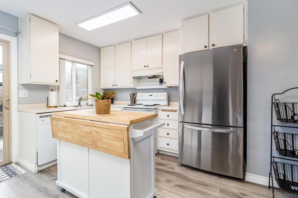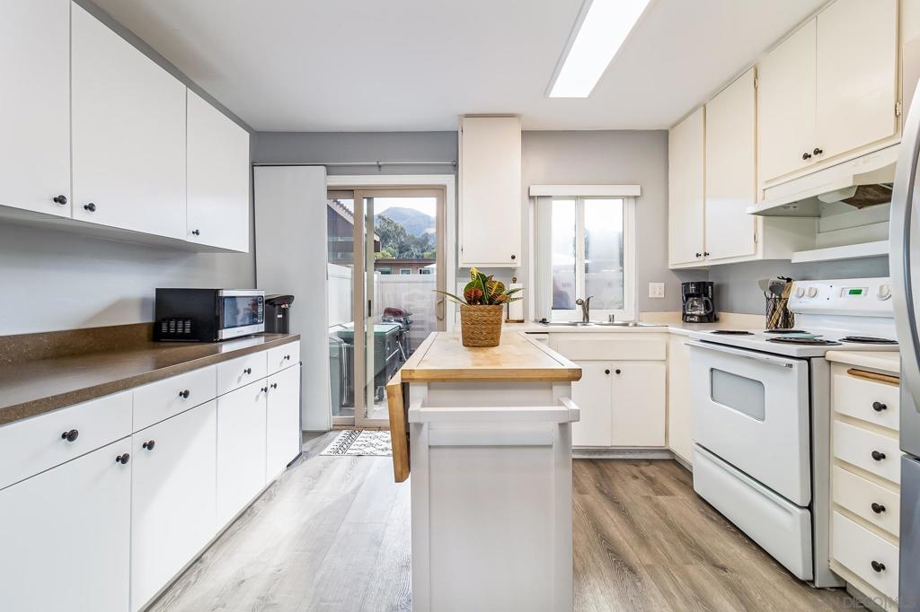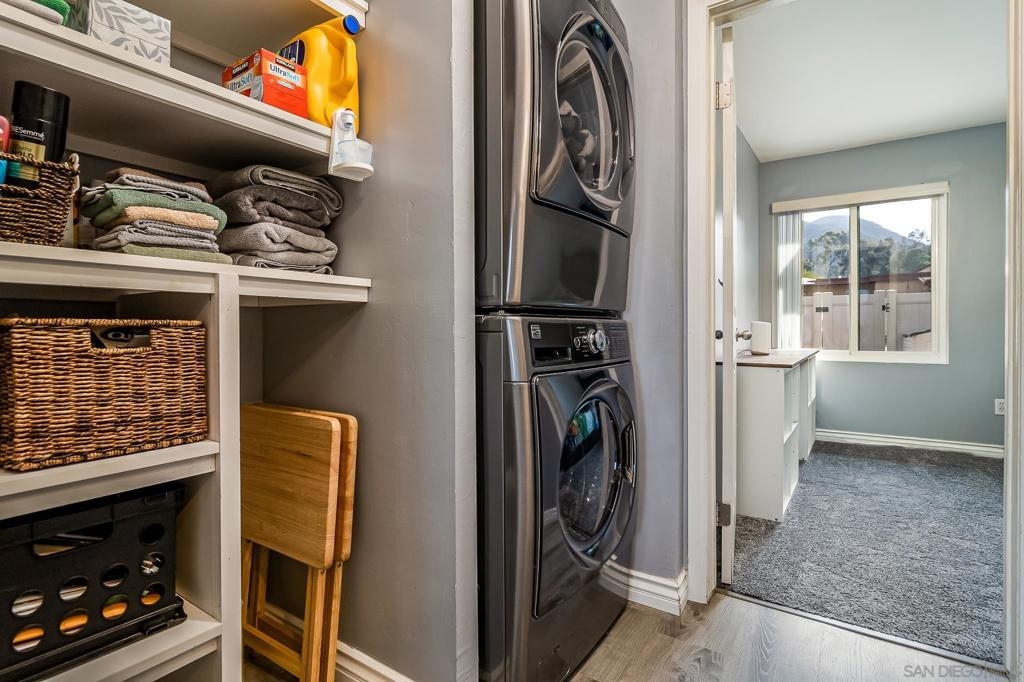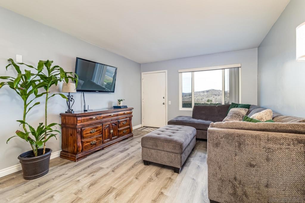 Location, Location, Location! Welcome to this quaint 2 bedroom, 1 bath condo offering an Open Layout and views of Mission Trails from your living room window. These rarely available units provide a detached home feel with no neighbors above or below, and a private large patio/yard, with direct access to your 2 reserved parking spots. This home includes all appliances including a newer refrigerator, dishwasher, and a full size in unit stackable washer and dryer. Move in ready with new paint and Vinyl plank flooring. This is the perfect home for a first time homebuyer looking for a quiet location surrounded by nature, minutes from Santee lakes, shopping and restaurants. Sunset Greens community has a community pool!