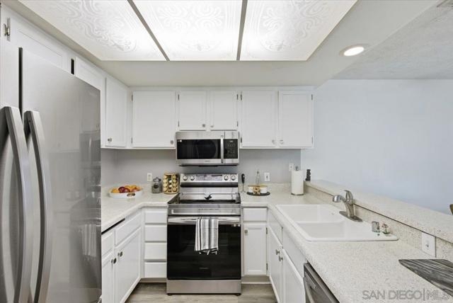 Welcome to 8825 Tamberly Way Unit A — a rare opportunity in the highly desirable Tamberly community of Santee! This charming end-unit townhome offers extra privacy with only one shared wall and no one above you. Featuring 3 bedrooms and 2 baths, this bright and inviting home boasts a spacious primary suite with dual closets and ceiling fans in all bedrooms. Recent upgrades include new waterproof luxury vinyl flooring throughout, modernized bathroom fixtures and cabinetry, and a stacked in-unit laundry for everyday convenience. The sliding glass door leads to your private fenced patio, perfect for morning coffee or relaxing under the stars. Enjoy the benefits of a 1-car garage plus driveway parking, along with a newer water heater and high-efficiency toilets installed within the past year. The peaceful Tamberly neighborhood features a community pool, guest parking, and a welcoming atmosphere. Just a short walk to Santee Trolley Square, offering shops, restaurants, and entertainment, or hop on the trolley for quick access to downtown San Diego, Petco Park, or a night out in the Gaslamp District. Close to city parks and freeway access, this home provides the best of both worlds — convenience and tranquility. VA Approved! Low HOA fees! Possible credits available toward closing costs or interest rate buy-downs. Don’t miss this opportunity to make this beautiful home yours today!