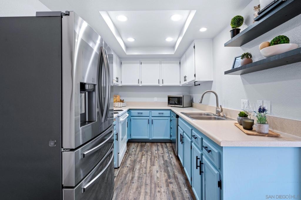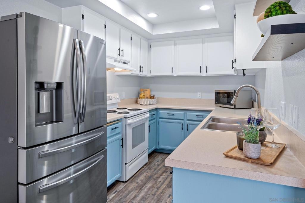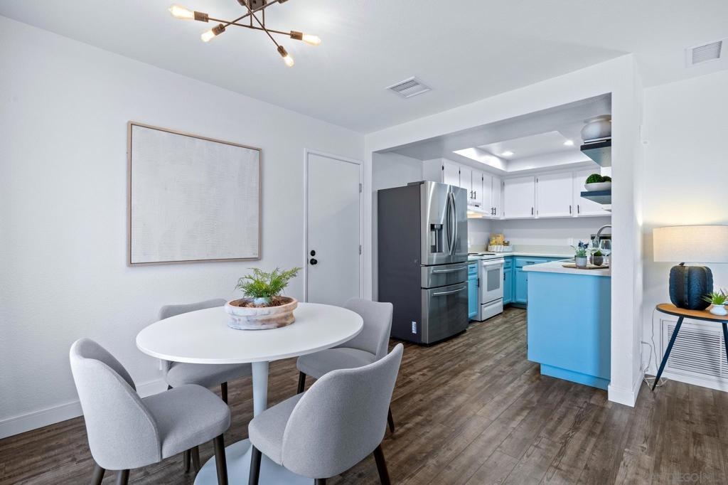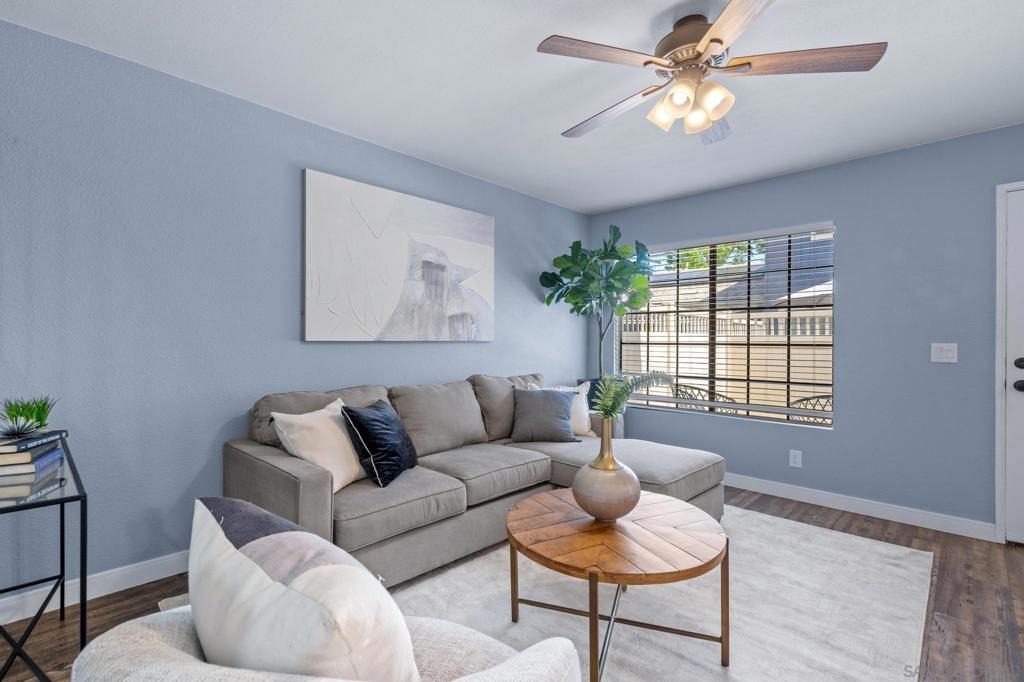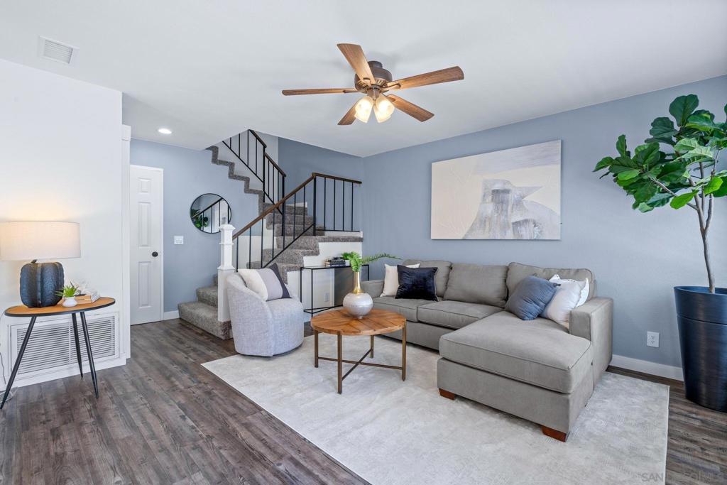 Welcome to 8832 Tamberly Court, Unit B – a beautifully updated corner unit 2-story, 2-bedroom, 1.5-bathroom condo in the heart of Santee. This home offers a rare level of privacy with no one above or below, and includes a direct access attached 1-car garage with additional assigned space nearby, in-unit laundry, and a fully enclosed private front yard, perfect for your pup or gardening! Inside, enjoy a fresh, modern feel with LVP flooring, removed popcorn ceilings, upgraded bathrooms, newer light fixtures, and recessed lighting in the kitchen. The functional layout offers great natural light and comfortable living spaces throughout. One of the best features of this property is its unbeatable location. Just a short walk to shopping, dining, parks, and the Santee Trolley Station, making commuting and everyday errands incredibly convenient! This turnkey condo offers both comfort and convenience in a well-maintained community with and an amazing HOA. A fantastic opportunity for anyone seeking a low-maintenance lifestyle with easy access to all that Santee has to offer while being close to all the fun in central San Diego.
