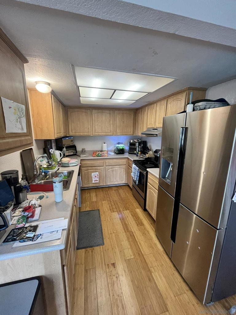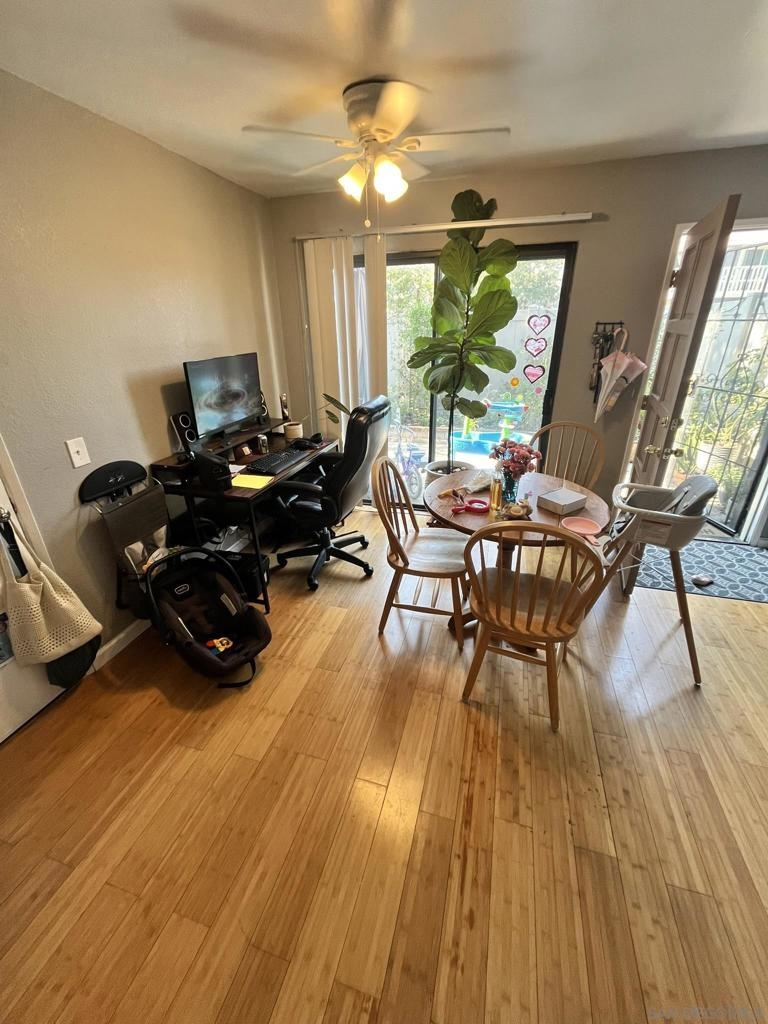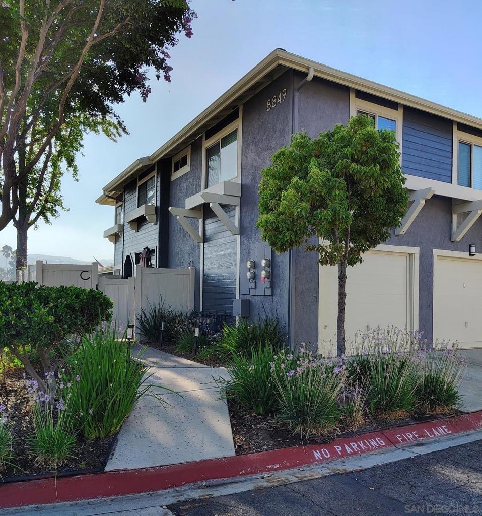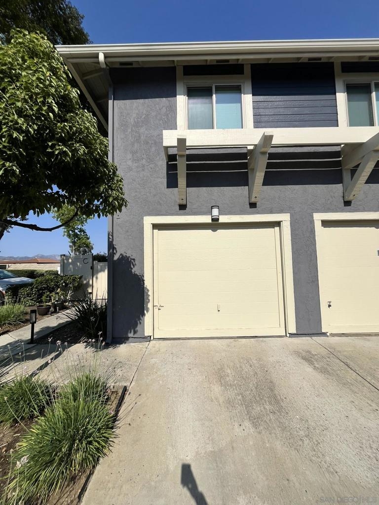 Welcome to 8849 Tamberly Ln Unit C, Santee, CA 92071—a bright and charming end-unit townhome ideally located in a quiet cul-de-sac near Santee Town Center. This 2-bedroom, 1.5-bath home offers a smart, open layout with a spacious living area, updated flooring, and a functional galley kitchen. Both bedrooms are privately situated upstairs, offering a peaceful retreat. Enjoy year-round comfort with central A/C and the bonus of in-unit laundry and an attached one-car garage with extra storage space—perfect for a home gym, workshop, or hobby area. Step outside to your private patio, ideal for relaxing or entertaining. The community features a pool and low HOA dues, making it perfect for first-time buyers, investors, or anyone seeking easy living in a prime location. Walk to shopping, dining, parks, and more—this home blends comfort, convenience, and value in one of Santee’s most desirable neighborhoods.