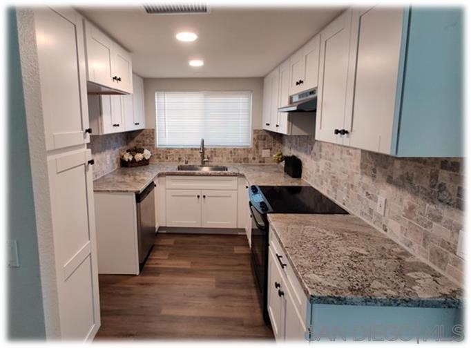 Completely remodeled beautiful move-in ready Home. New Kitchen, Quartz Counters and New Cabinets. Gorgeous new carpeting, New Vinyl wood plank flooring throughout. New Energy efficient low-E Windows and ALL Led lighting. Newer HVAC. Upstairs unit with balcony. This end unit has a good view of the swimming pool! Sharing only one common wall with no unit below, you will find this unit is quite private. Single car garage, washer and dryer inside the home. Great neighborhood with walking distance to parks, shopping center, restaurants and trolley, 20 minutes to La Jolla Shores, Downtown San Diego, and/or central San Diego business districts, with easy access to major freeways, north and south, east and west. Sewer: Sewer Connected Topography: LL