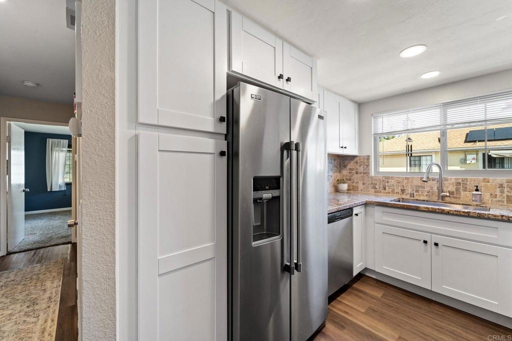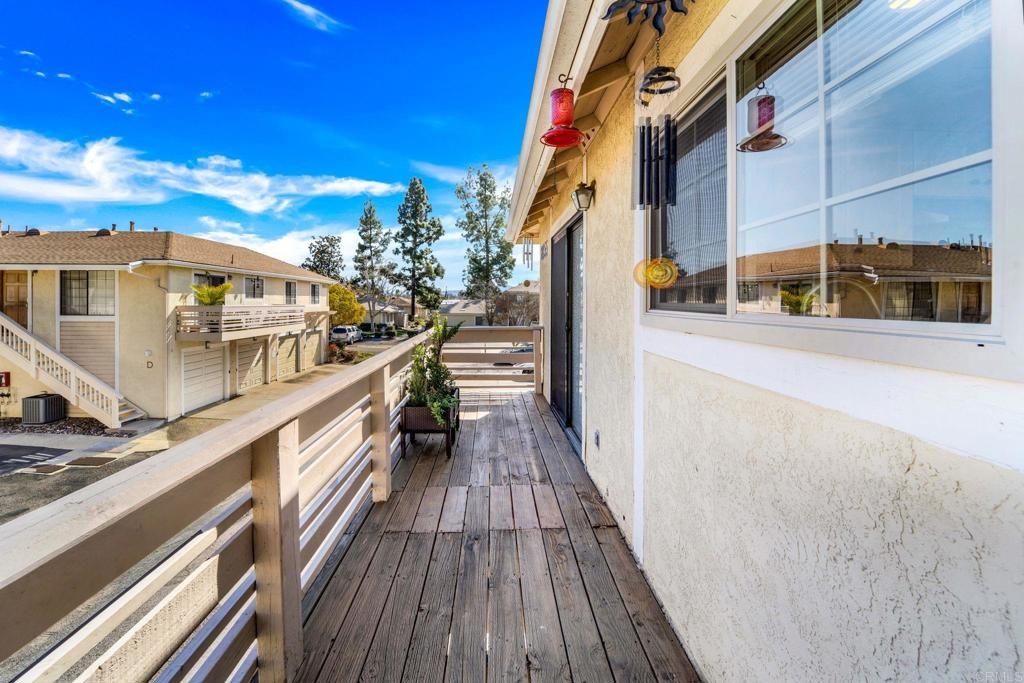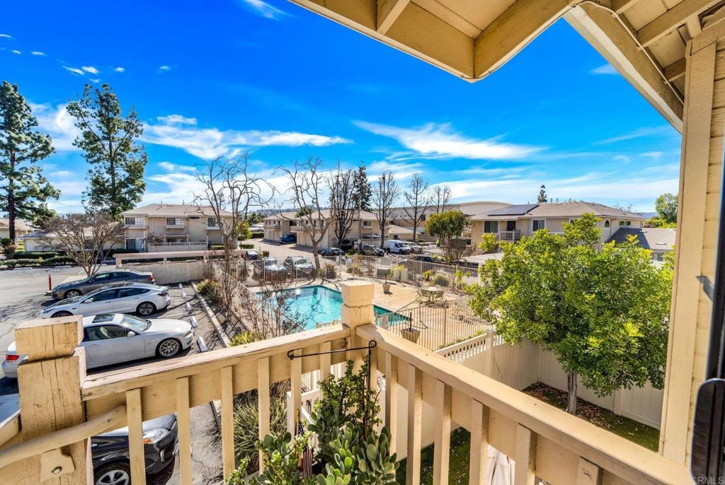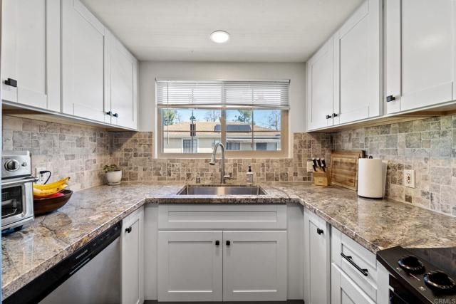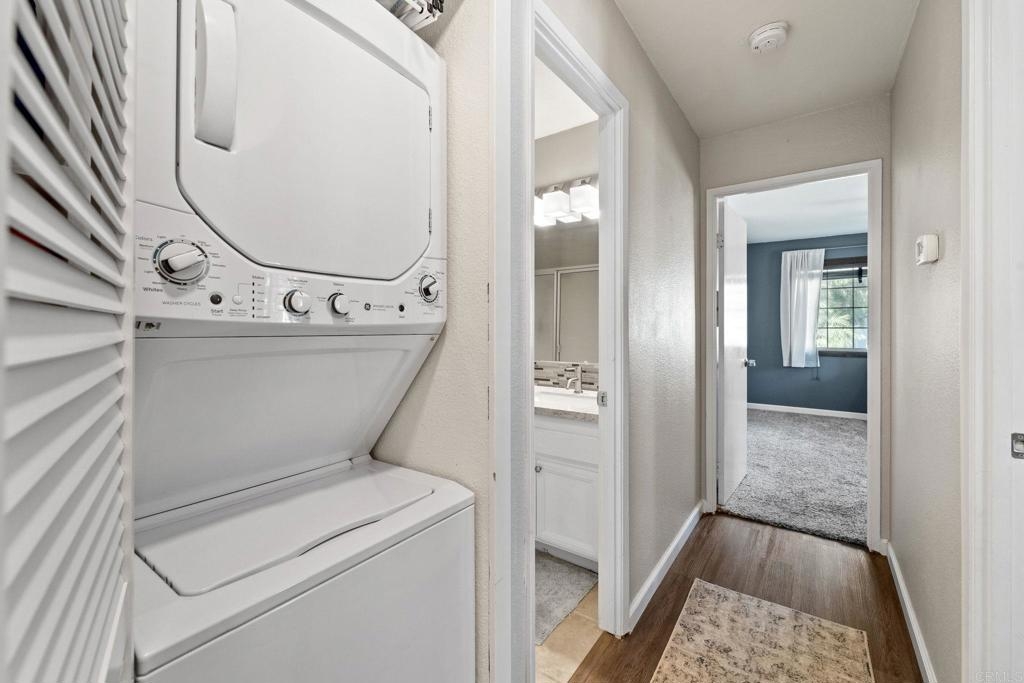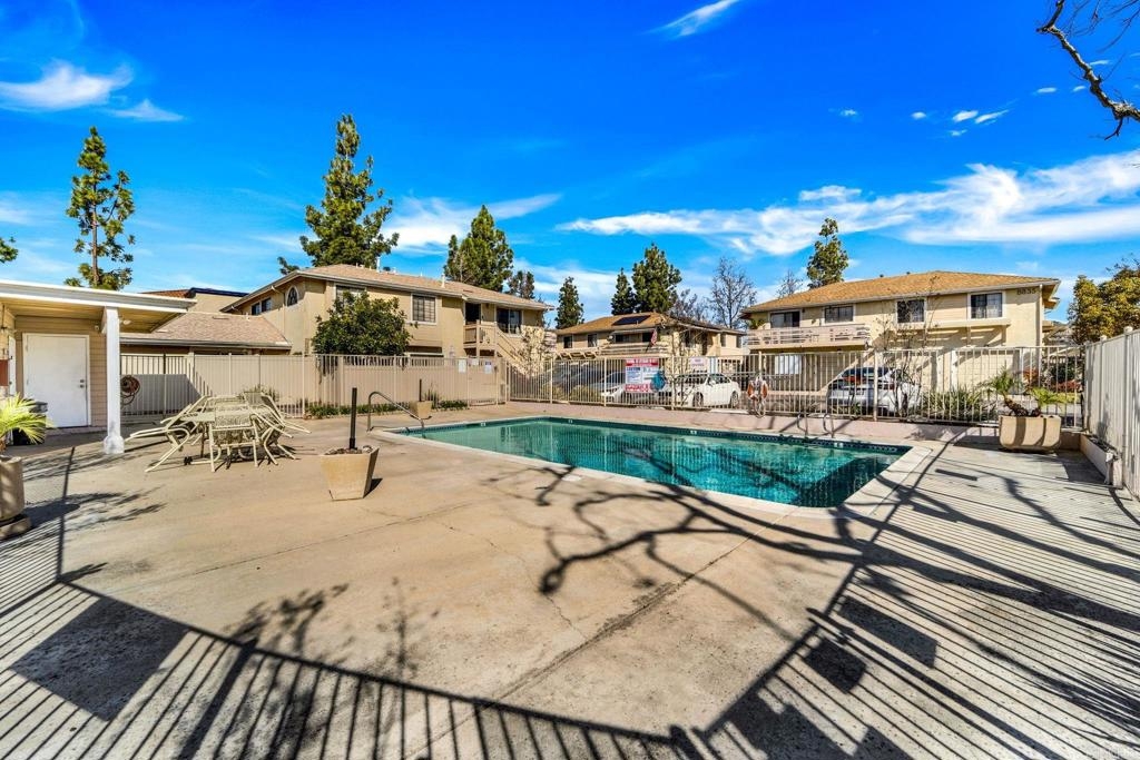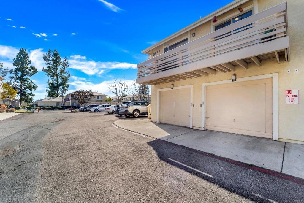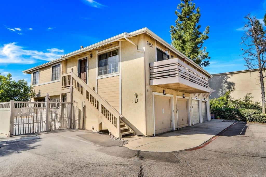 The perfect combination of comfort and convenience in the heart of Santee. Walk to shopping, coffee shops/restaurants, gym, trolly, all just steps away. Updated 2 bd, 2 ba with granite counters, SS appliances, in unit laundry and large master suite with walk in closet. Second floor unit has a nice size balcony, no one above, and garage below -plus an additional dedicated parking spot. Plenty of guest parking throughout the complex, community pool, affordable HOA fees, and VA approved.