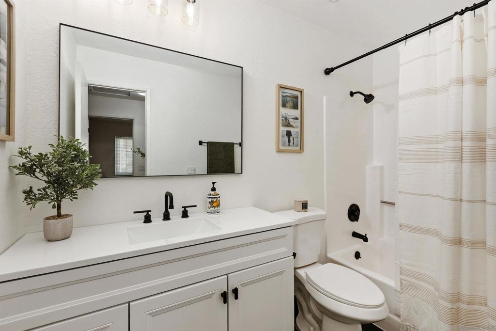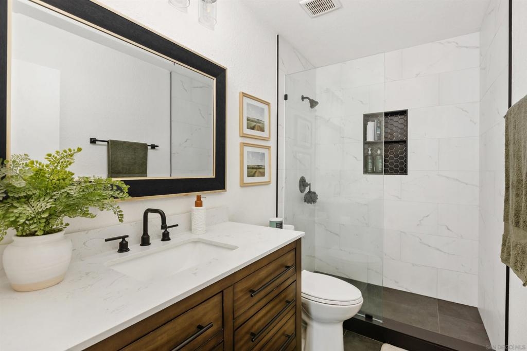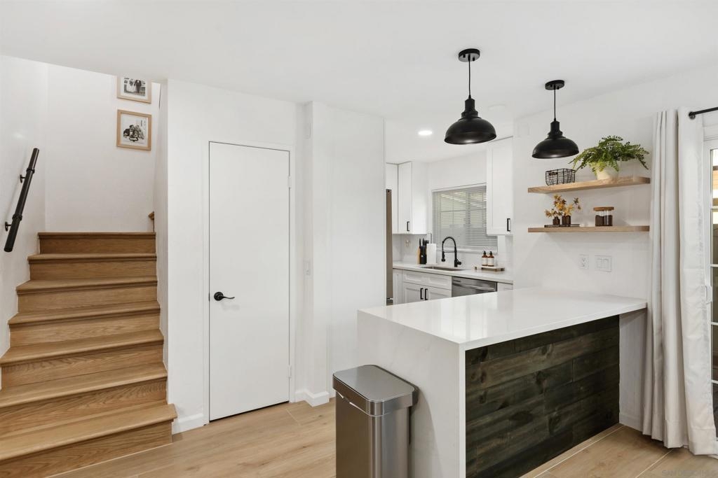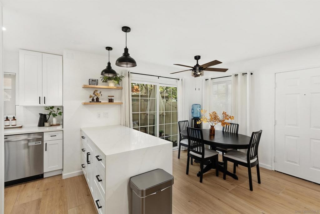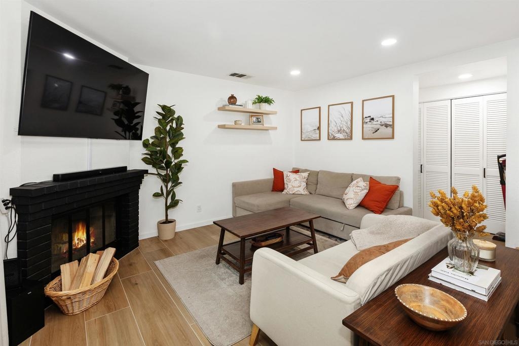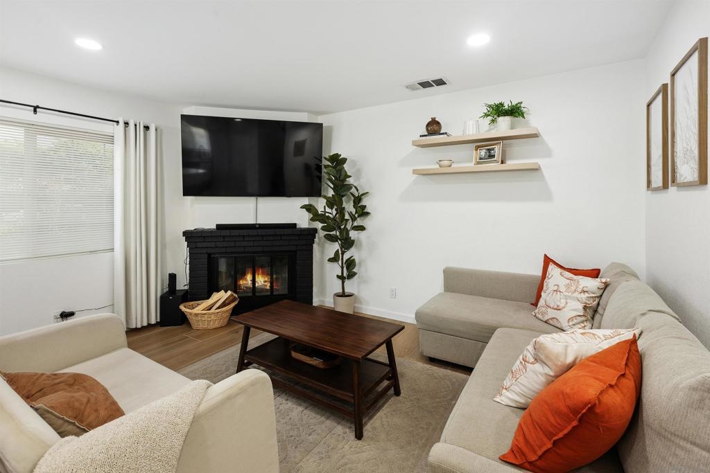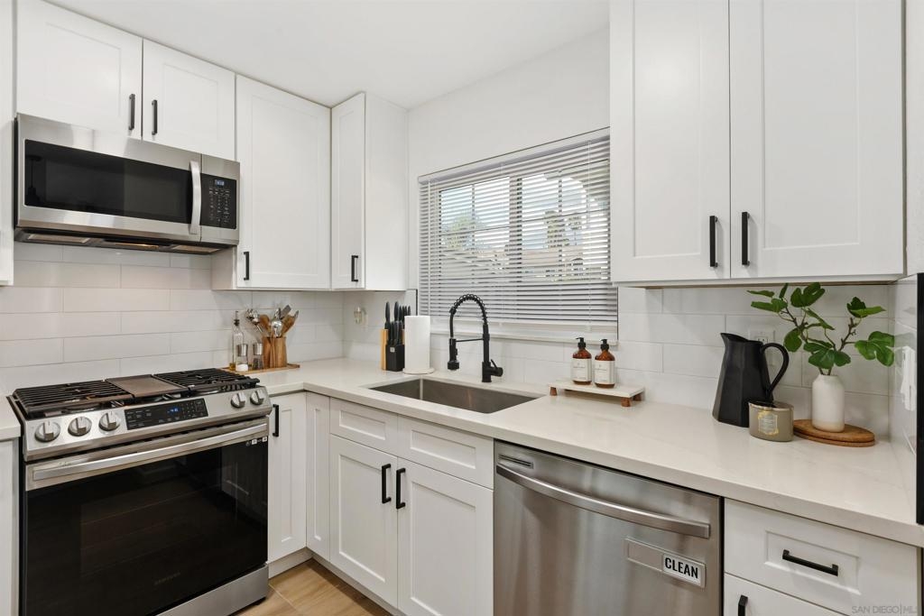 This stunning condo has been completely remodeled! The end unit feels like a Townhome - no one above or below. The open kitchen has quartz countertops, newer appliances, ample counter space. Solid surface floors throughout. The dual pane windows hold in the freshness of the central AC. Host gatherings in your private outdoor space or at the Clubhouse, Pool and Spa. Included is a detached garage plus an assigned parking space. VA & FHA approved community.