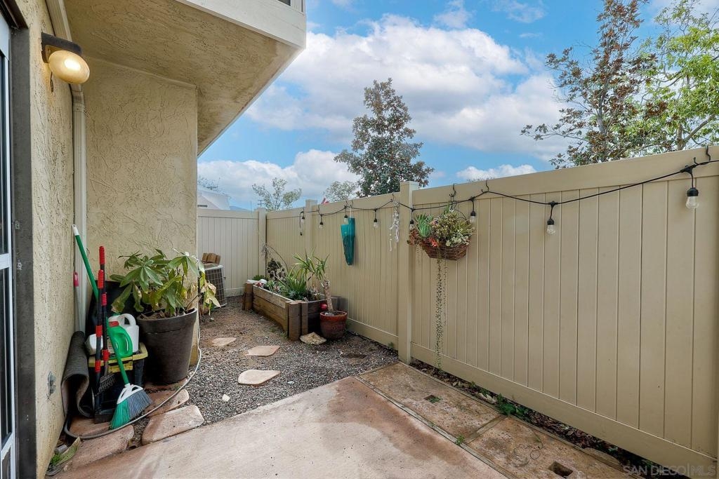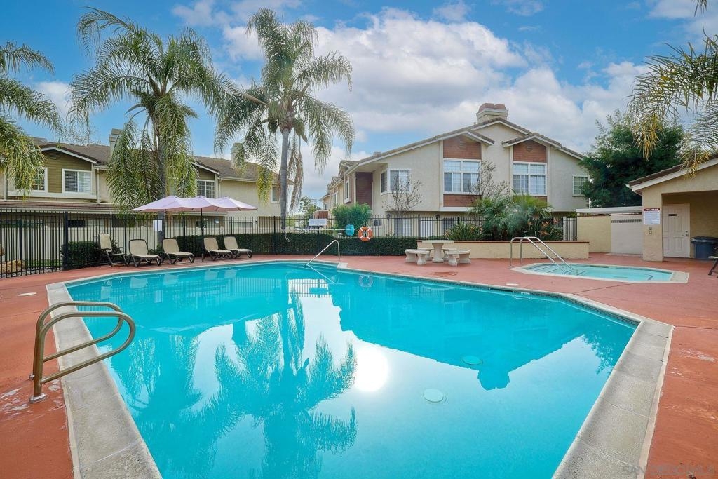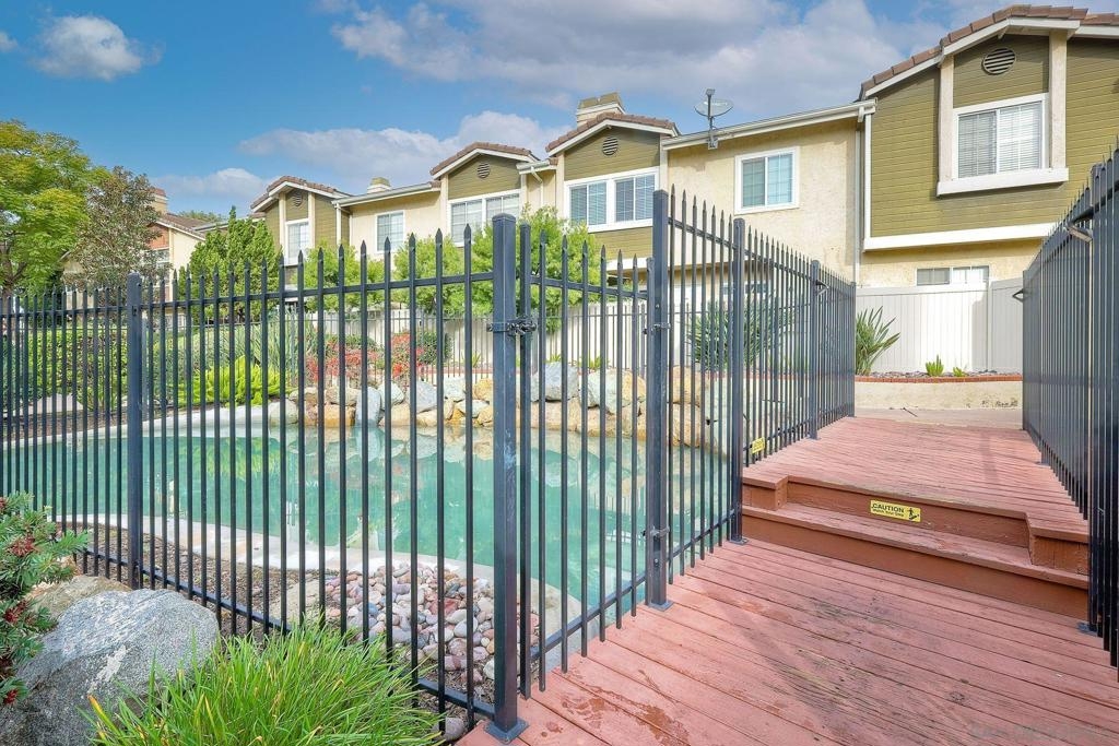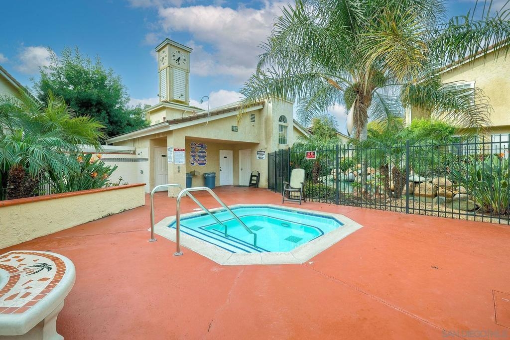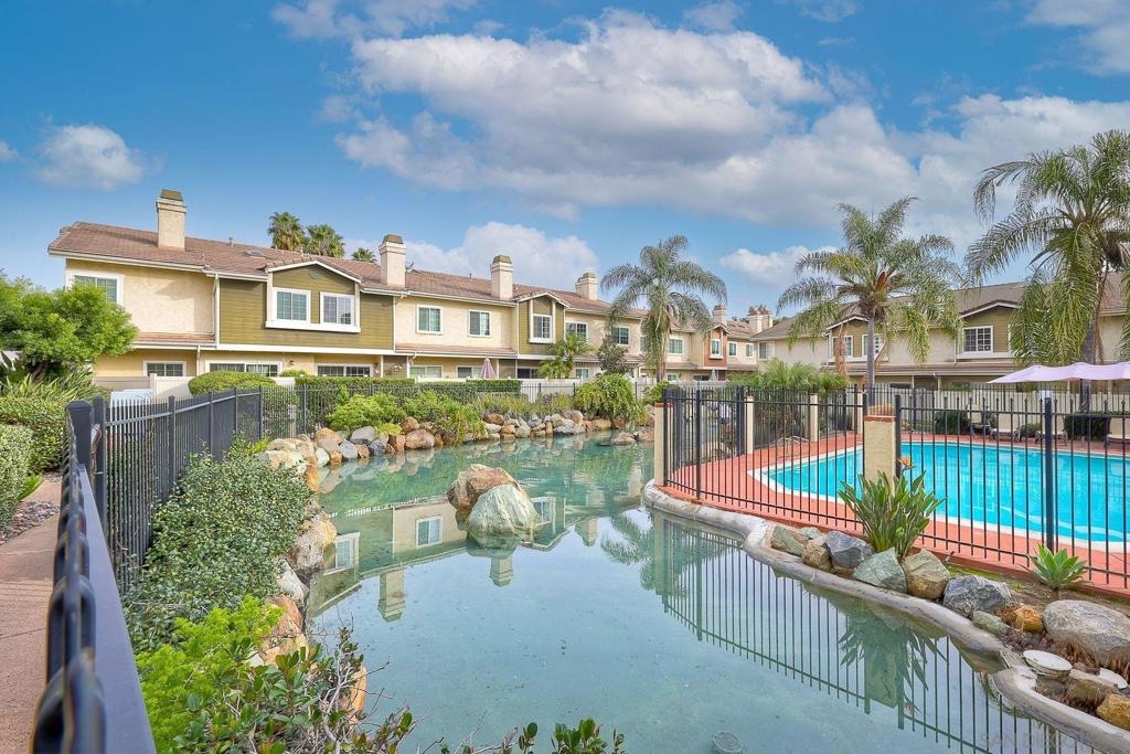 Desirable end unit ideally situated close to community amenities featuring a pool, jacuzzi, clubhouse and walking paths along a soothing water feature. 2 car detached garage and mailbox are only steps away. The interior has new engineered wood downstairs, new paint throughout, updated bathrooms and matching smart appliances. Beyond the community, enjoy proximity to schools, the Santee Sports Complex with YMCA, and the vibrant Town Center Shopping area. Nature enthusiasts will appreciate the nearby Walker Preserve trail.