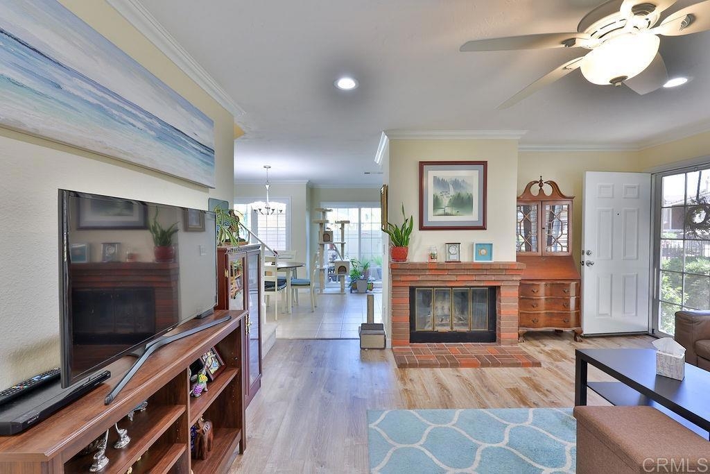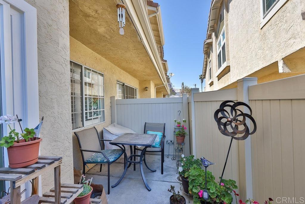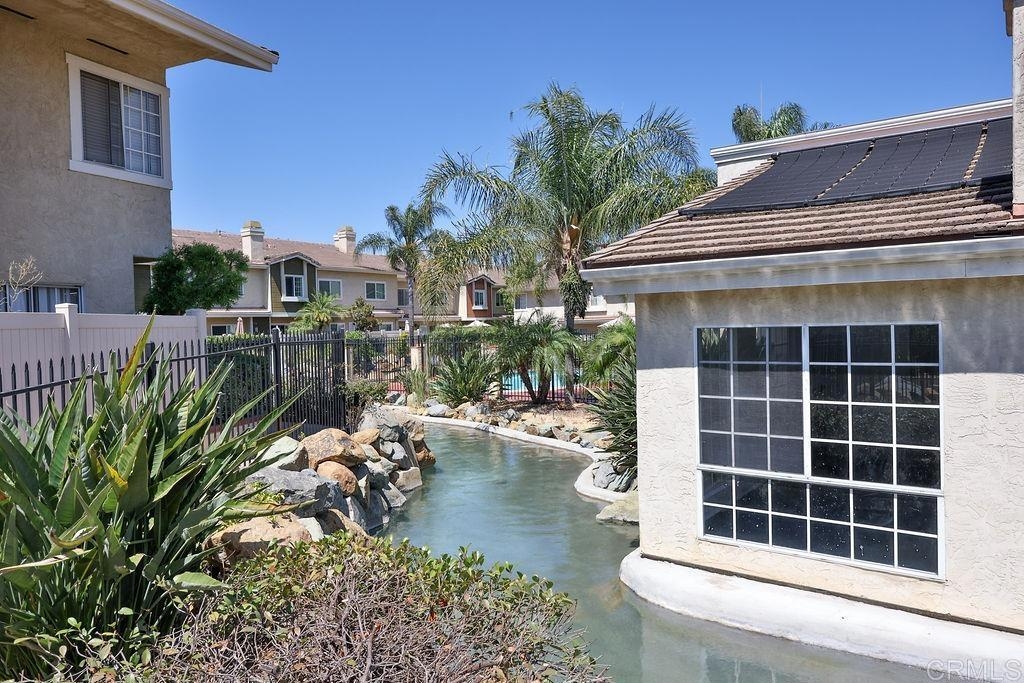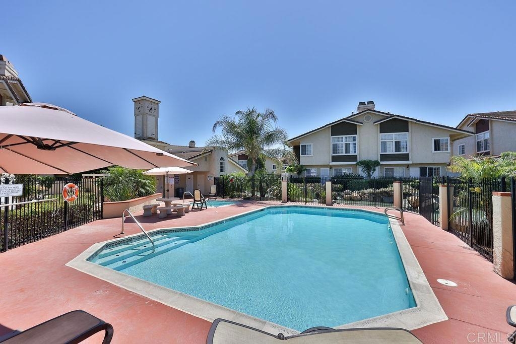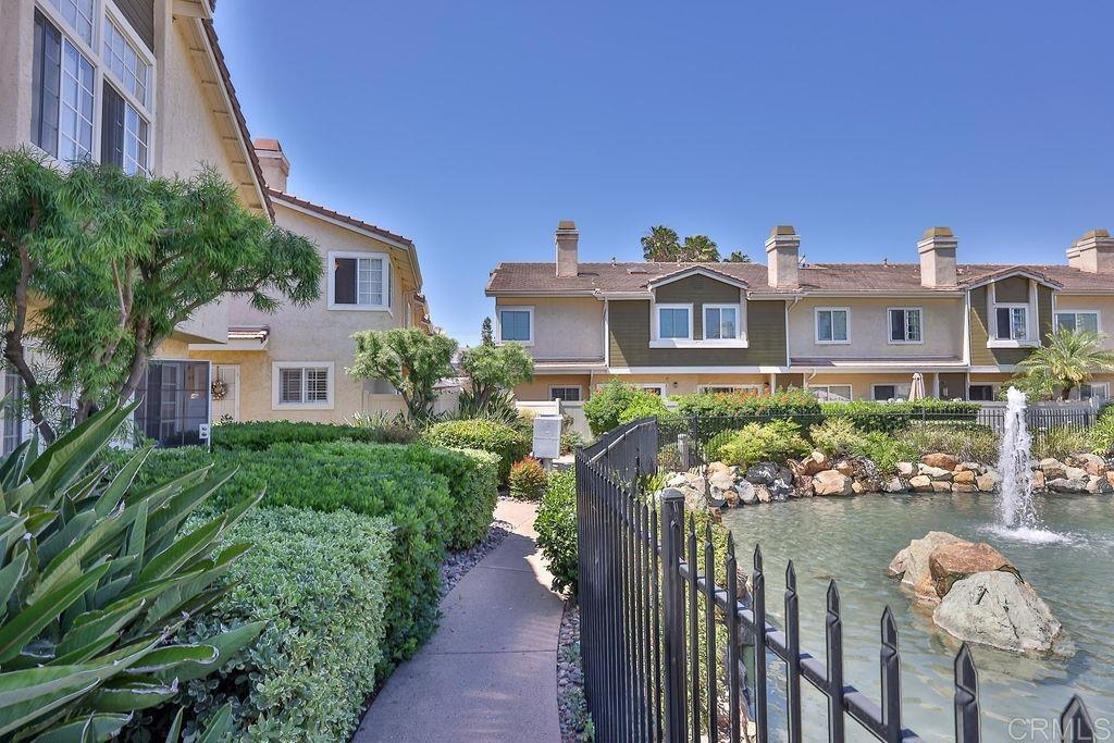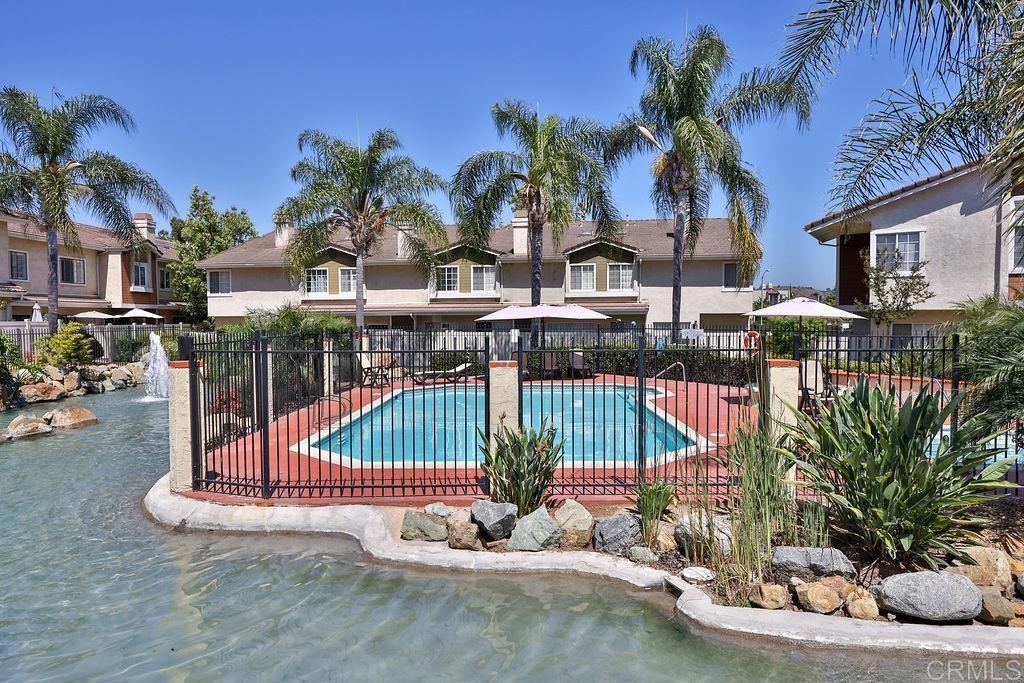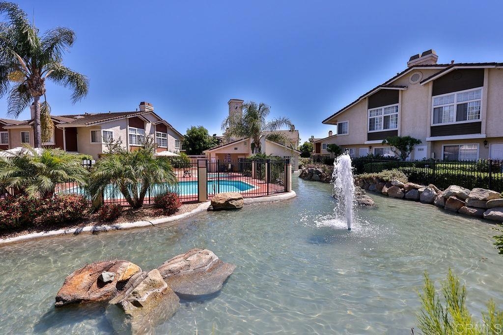 Discover the convenience, comfort, and charm at this stylish 3-bedroom, 2.5-bathroom condominium in the heart of Santee. Located in the highly coveted community of Magnolia Lakes, this home boasts a prime location directly adjacent to the sparkling community pool, spa, and tranquil fountains, granting the residents with an exclusive resort-like living experience. Upon entering this beautiful condo, you are welcomed into a flowing floor plan drenched in natural light, perfectly designed to maximize both space and comfort. The kitchen includes a refrigerator, gas range, microwave and dishwasher, white cabinets and a wonderful view from the kitchen sink. Adjacent to the kitchen, you'll find a dedicated dining room and a spacious living area that presents a perfect blend of functionality and style, making it the ideal spot for both entertaining and casual living. This condo features three generously sized bedrooms and two and a half tastefully designed bathrooms. The master suite serves as a private sanctuary, complete with an ensuite bathroom with a beautifully tiled walk in shower, for ultimate comfort. Additional home features include a whole house attic fan, shutters, ceiling fans, recessed lighting, crown molding, neutral paint, a dedicated laundry room, and ample storage space throughout the home. Enjoy a fully fenced patio area perfect for your favorite potted plants and great for an outdoor area for your pet(s). The condo comes with a single car garage and additional assigned parking space. The monthly HOA fee of $470/month includes water, sewer and trash.