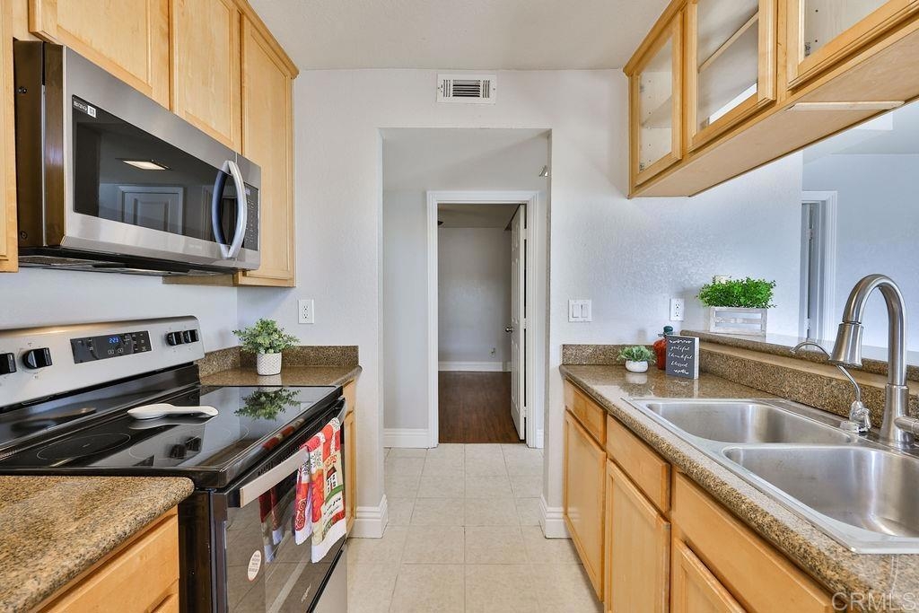 Offered for $425,000 to $450,000. This 2-bedroom, 1-bathroom home comes fully equipped with brand-new stainless steel appliances, including a refrigerator, electric range, microwave and dishwasher. Enjoy the luxury vinyl flooring and air conditioning, complemented by natural light streaming through the large windows. Step outside to the private balcony off living room, complete with a storage closet. One assigned parking space plus an 8x12 storage room. Situated in the gated community of Towne Villas, amenities include a pool, spa, clubhouse and community laundry facilities. Enjoy the convenience of easy freeway access and proximity to Santee's local businesses.