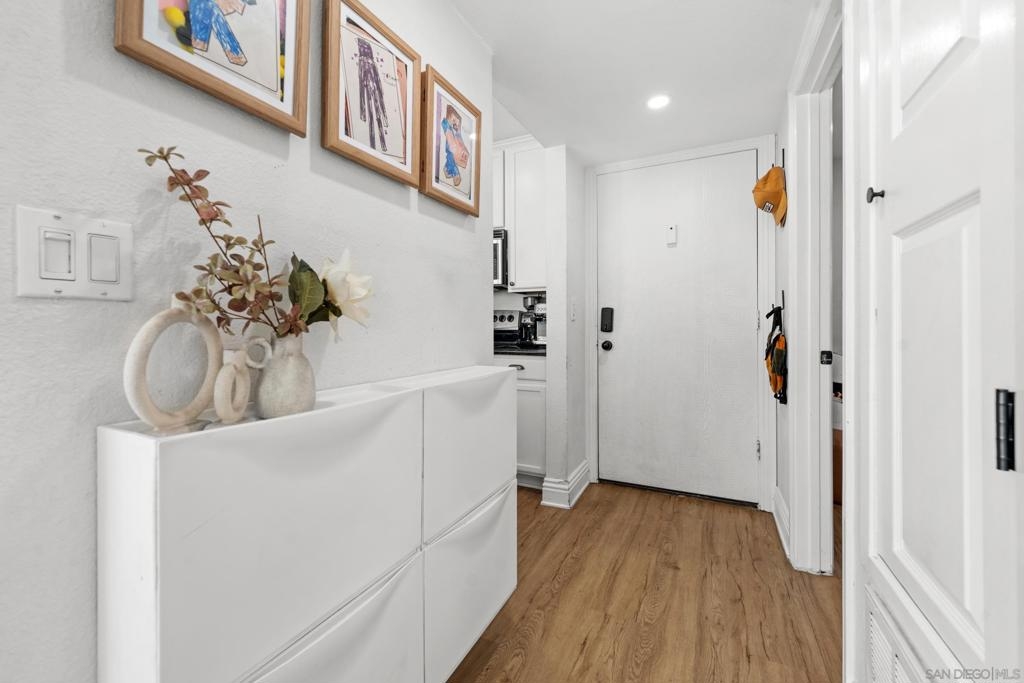 Welcome to 8731 Graves Ave Unit 42, a meticulously cared-for 2-bedroom, 1-bathroom condo offering 781 sq ft of single-story living with 1st floor entry in a gated Santee community. This move-in-ready unit boasts an open floor plan with a beautiful fully remodeled bathroom, new vanity and floor to ceiling tile work, custom alder wood kitchen cabinets and new light oak laminate flooring throughout. Enjoy your morning coffee on the covered patio, which includes a storage room for added convenience. Additional amenities comprise dual-pane windows, stainless steel appliances, a new stackable washer/dryer, assigned covered parking near the unit, and an expansive 60 sq ft storage room. The community offers beautifully landscaped grounds, mountain views, a pool, and a spa. Centrally located, this condo provides easy access to freeways, shopping centers, and more, making it an ideal choice for first-time homebuyers seeking a pristine property in Santee.