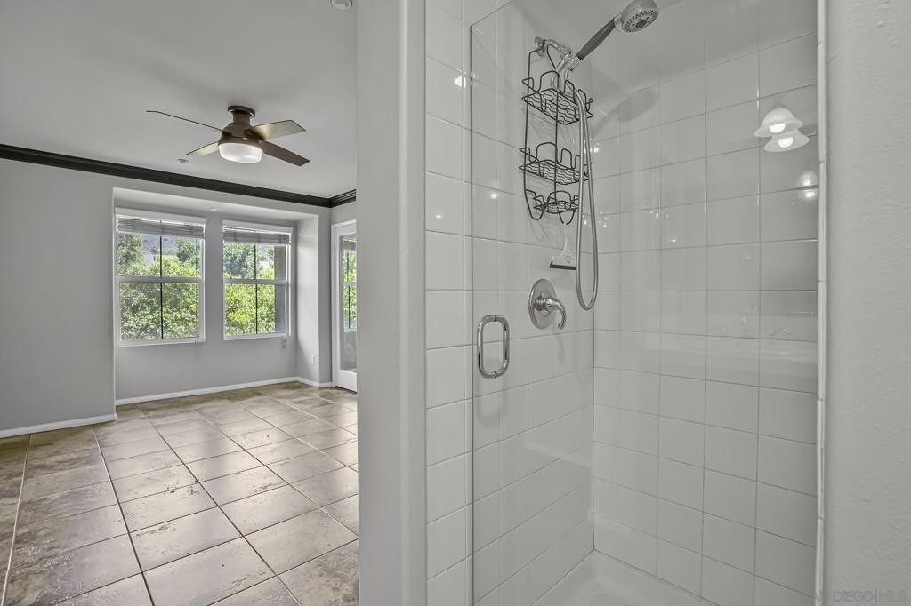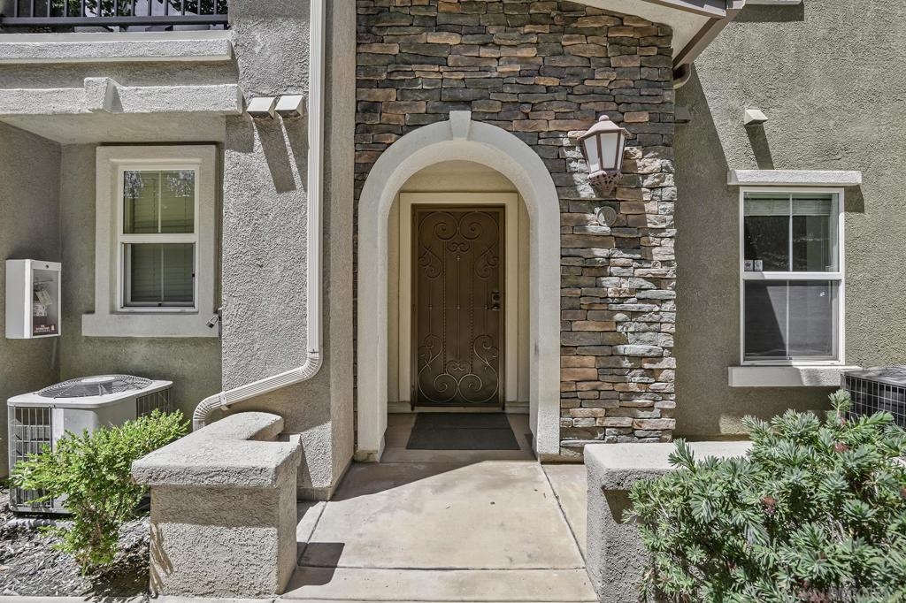 You have to see this beautiful townhome in the luxury Treviso Complex. Built in 2008, this stunning tri level offers 3 bedrooms, 3 full bathrooms, 2 sets of laundry, 2 car attached garage and an open concept main living floorplan. Upon entering through the front patio, you will notice the ground floor en suite bedroom and full size laundry room that leads to the attached 2 car garage with storage and sink. The middle floor boasts a gourmet kitchen with an abundance of cabinetry, tv, eat in bar for optional bar dining and granite counter tops which looks over the dining area and large living room. On this floor also is a guest half bathroom. Located on the top floor are both an en-suite second bedroom and the luxury primary suite that offers walk in closet, a stacked washer dryer (in the bathroom), high ceilings and windows looking out onto the greenery. Other upgrades include: high ceilings through, AC, LED bulbs throughout, community pool, community spa, clubhouse and guest parking. Walk to Mission Trails and a short drive to Town Center shopping and the Trolley Stations.