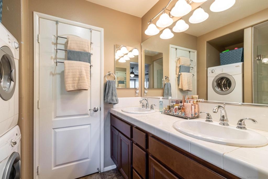 Incredible Townhome at the exclusive Treviso Complex in Santee. This tri-level home 3 bedrooms and 3 full baths, laundry room 1st floor and stackable washer and dryer on top floor also. Great access two car garage with storage. Completely upgraded gourmet kitchen with granite countertops, stainless steel appliances and lots of cabinet space. Spacious master bedroom with its own master bath, walk in closet and separate stackable washer and dryer. Central A/C community pool, spa and clubhouse. This home has been well cared for and even has its own private patio out front in a quite setting. Walking distance to Mission Trails with many miles of hiking trails and biking trails with lake and campground. Custom Arizona leather sectional cost $10,000 will stay for buyer. It doesn't get better than this. Equipment: Garage Door Opener Sewer: Sewer Connected Topography: LL