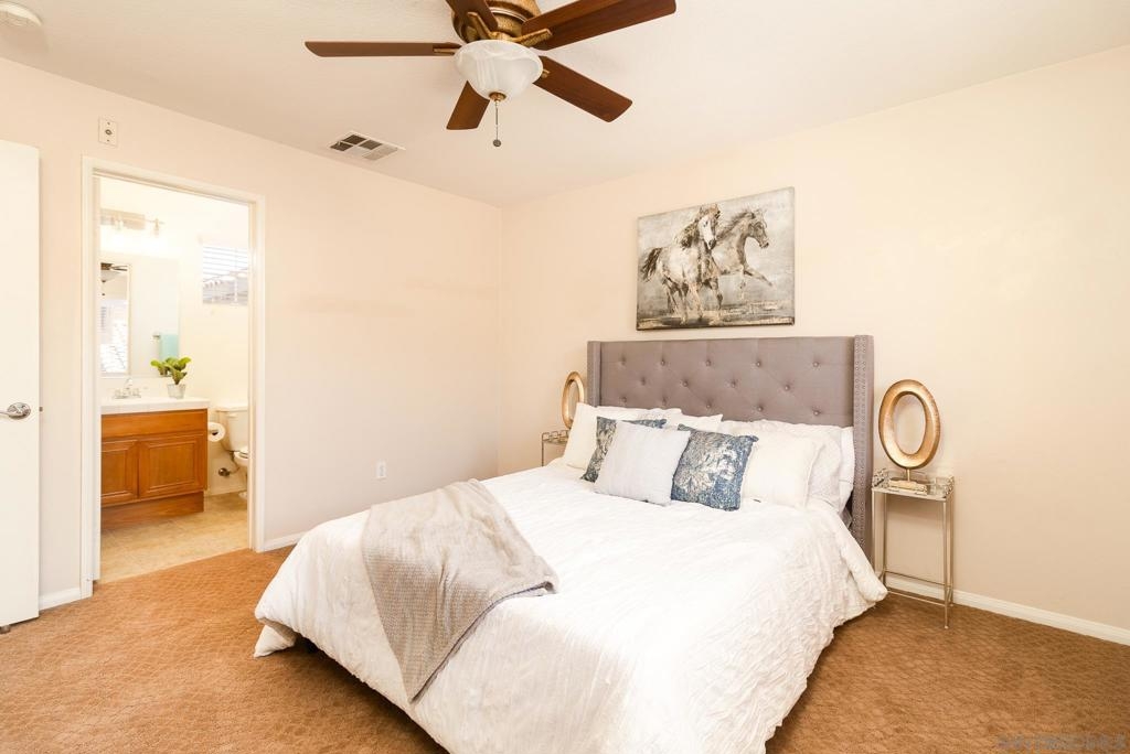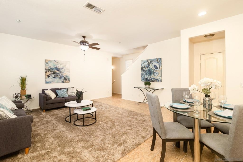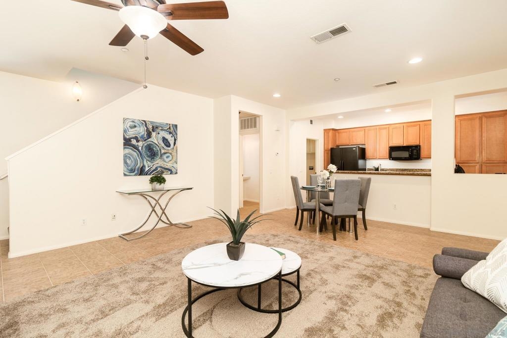 Welcome to this elegant townhome in the highly sought-after Treviso community in West Santee, offering over 1,200 square feet of modern comfort. This residence features two spacious primary bedrooms, each with its own walk-in closet and large tub, perfect for unwinding. The open floor plan is highlighted by new carpet, fresh paint, and updated fixtures, creating a bright and welcoming atmosphere. The kitchen boasts granite countertops, a gas stove, and a range top oven, ideal for cooking enthusiasts. Recessed lighting and ceiling fans throughout add a touch of contemporary style. Enjoy the convenience of in-unit laundry and a two-car attached garage with interior entry, complete with 220 electric power for your electric car. Central HVAC ensures your comfort in every season. Located in a newer, well-maintained community, this home offers access to a sparkling pool and is just a short distance from the scenic Mission Trails. Don’t miss out on the opportunity to own this beautiful home in Treviso!