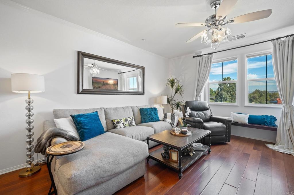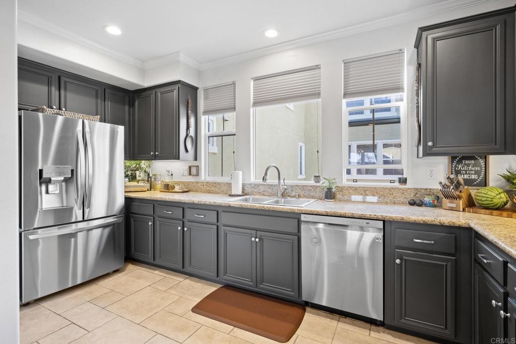 Turn-key, Convenient and Trails abound! This highly upgraded property is as private as they come, offering beautiful sunrise views over the mountains and yet, is just minutes from the scenic Mission Trails Park. Nestled within the prestigious Treviso community, this corner townhouse is beautifully upgraded and meticulously maintained.The entry level features an additional space, adaptable to be a third bedroom, an office, playroom, or private exercise area. Adjacent is an indoor laundry room and direct access to the attached two-car garage, offering a LARGE additional storage space. The main level upstairs is an open concept - complete with an expansive eat-in island, granite countertops, and state-of-the-art new stainless steel appliances and cozy fireplace. The large, towering dual-pane windows bathe this level in natural light, enhancing its spacious allure. Thoughtfully adorned rich wood laminate flooring is complemented by elegant italian marble flooring gracing the bathrooms. Two generously-sized bedrooms await upstairs, each graced with its private bath and shower! The master bedroom showcases a large recessed window, perfect for a window bench, and a wall-to-wall walk in closet! The PET FRIENDLY community offers a suite of amenities, including a community pool, soothing jacuzzi, clubhouse, and convenient guest parking. Highly acclaimed schools, shopping and a diverse dining scene are all within arm's reach.
