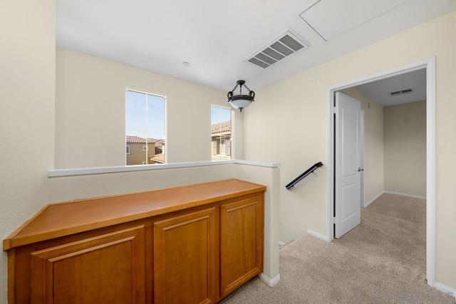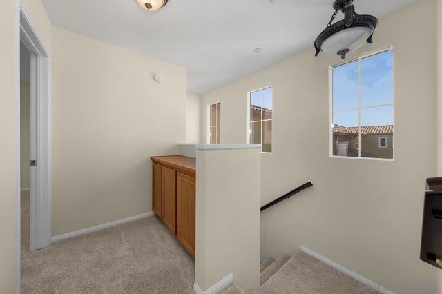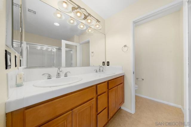Nestled in the prestigious Treviso community, this elegant 2-bedroom, 2.5-bathroom residence exudes timeless sophistication. Built in 2005, this meticulously maintained home boasts 1234 square feet of luxurious living space. Step inside to discover new interior paint, plush new carpet, and gleaming hardwood floors illuminated by recessed lights. The open floor plan seamlessly connects the living, dining, and kitchen areas, creating an inviting ambiance for entertaining. The dual primary bedrooms each feature walk-in closets and en-suite bathrooms, while a convenient half bath graces the main living area. A 2-car garage offers ample parking. Enjoy access to pool amenities and the convenience of in-unit washer and dryer. Ideally located near freeways, schools, and shopping, this home epitomizes luxury living in Santee, CA.