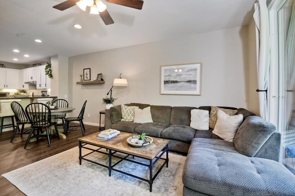 Beautiful turnkey townhome located in the highly sought after Treviso Community. This cozy home has it all; high ceilings, luxury vinyl flooring throughout the main floor and stairway, large kitchen with white cabinets contrasted by beautiful dark granite countertops that open up to the dining and living room, giving you that open-living concept. A guest bedroom and full bath are on the main floor while the master bedroom and third bedroom are on the next floor. This community has a swimming pool, jacuzzi, and a beautiful clubhouse, which is perfect for gatherings. It is conveniently located on the west side of Santee, minutes from Freeway-52 with easy access to Mission Trails Regional Park and Cowles Mountain. This home has a large tandem 2-car garage with built-in storage cabinets. The laundry room fits a full size washer and dryer side-by-side. The interior was recently painted with a beautiful neutral color. There is a his and hers closet with separate doors in the master bedroom. Complex Features: ,, Equipment: Dryer Sewer: Sewer Connected Topography: LL