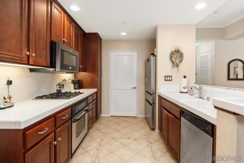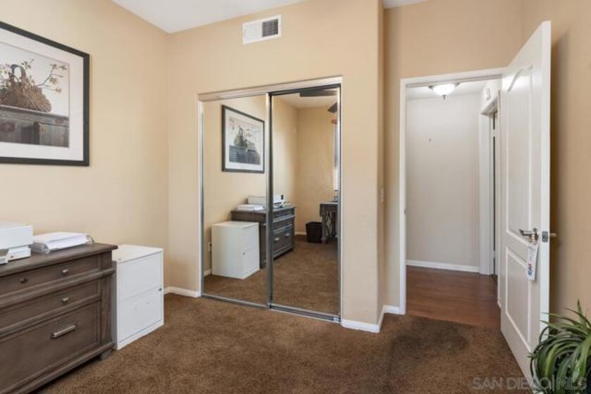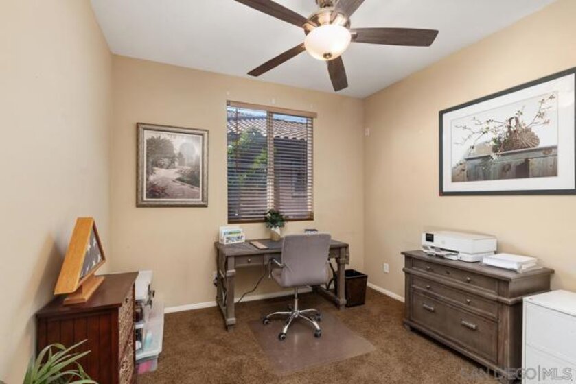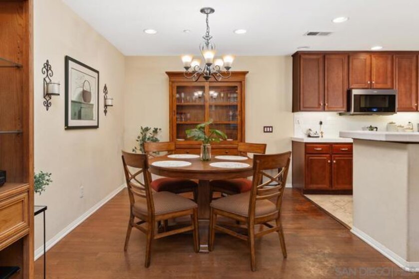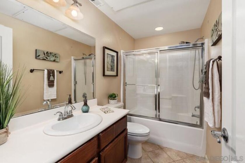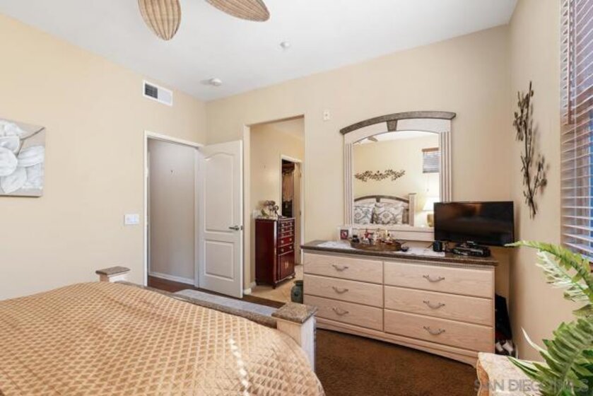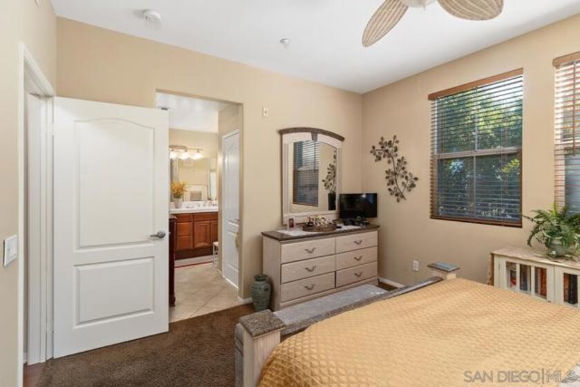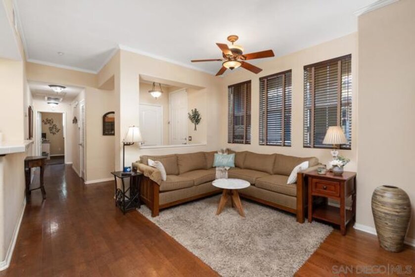 Welcome to the upscale west Santee community of Treviso built in 2005! Walk upstairs to your generous front porch and you instantly get the feeling of peace and privacy. Open the front door and enjoy the open concept living with all the modern features like 10-foot ceilings, spacious kitchen and dining room with adjacent indoor laundry/pantry and full size washer-dryer. Walk down the hall to the 2 good-sized bedrooms and 2 full bathrooms. The primary suite has a spa bathroom & built-in closet system. With over 1000 square feet, everything you need is ready and waiting including lots of additional storage. Hardwood floors, ceiling fans & custom window treatments are just some of the upgraded interior features. Single car garage with built-in storage, extra assigned parking space, plenty of guest parking, community pool & BBQ, this condo is waiting for you to make it your new home! Minutes from Santee Lakes & walking trails. Easy Freeway access. Seller is motivated!