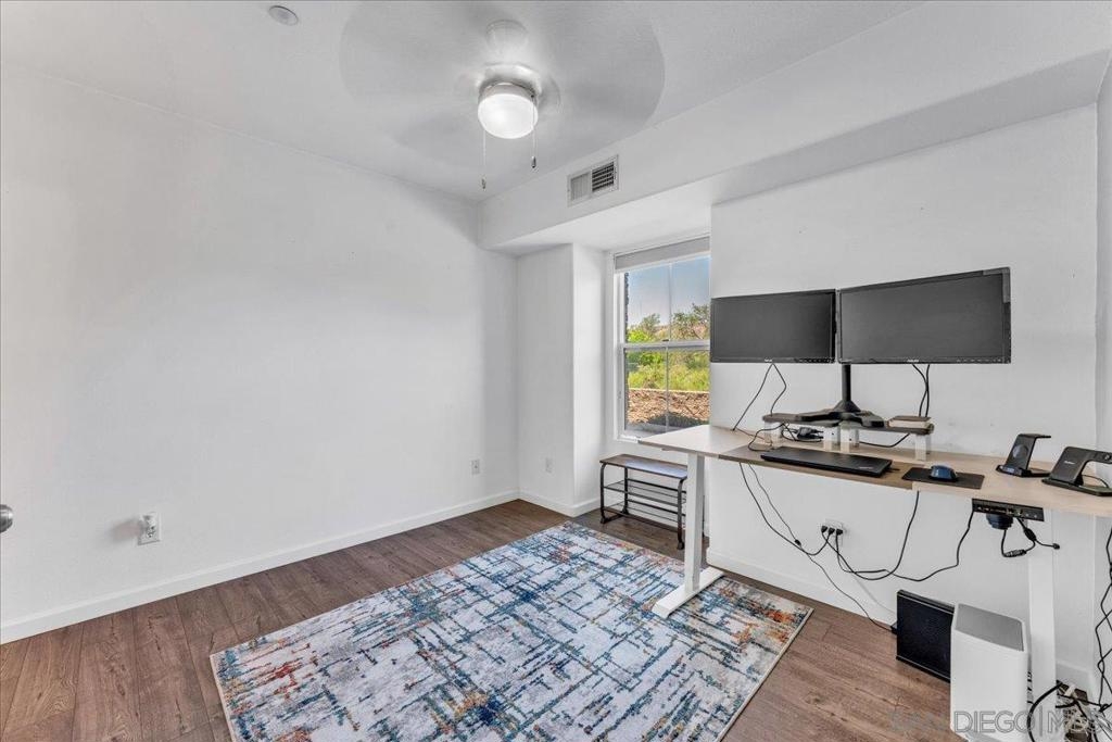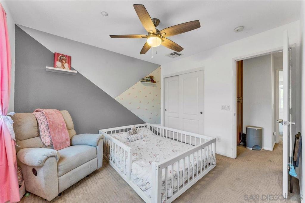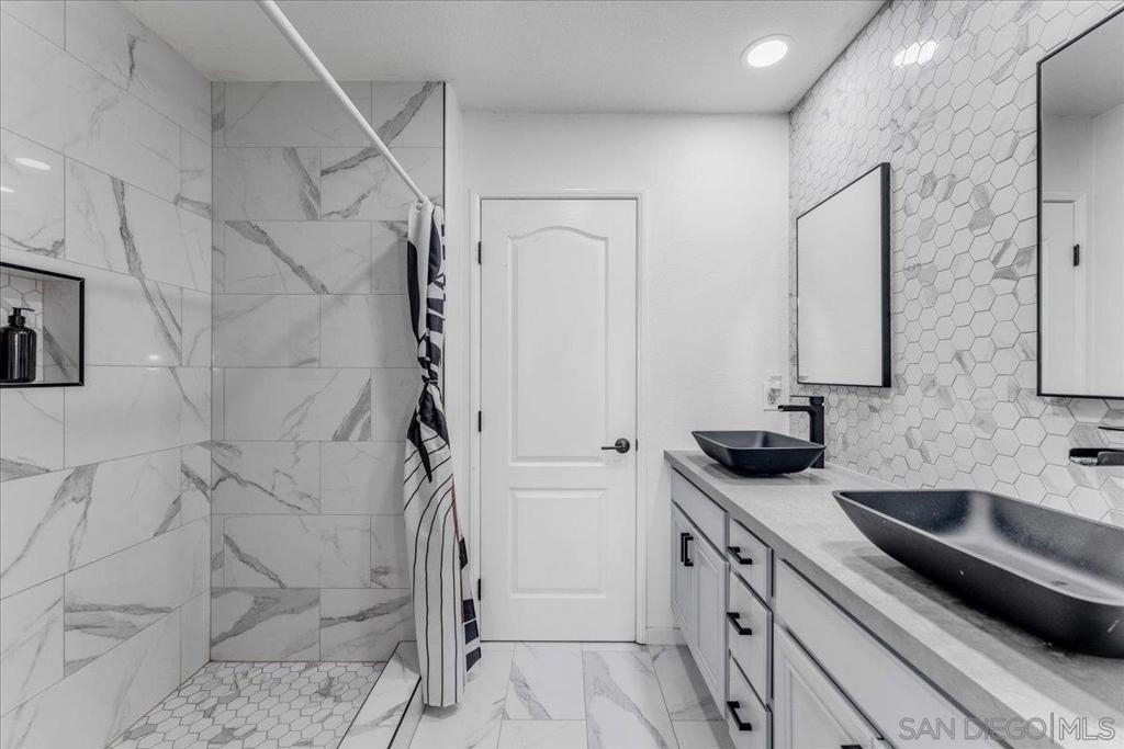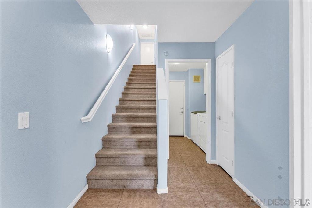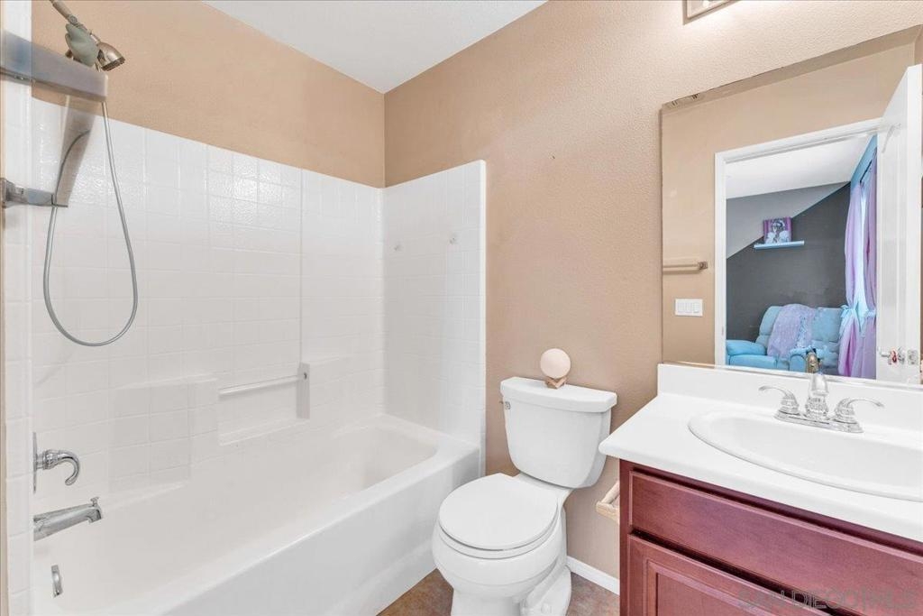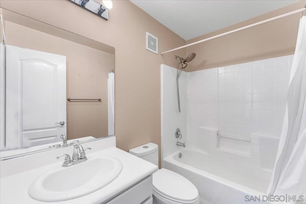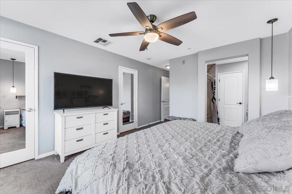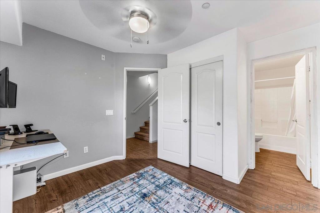Experience this stunning 3-bedroom, 3.5-bathroom townhome in the highly sought-after Treviso Santee community. This rare Plan 4 unit is perfectly located at the back of the complex, offering exceptional privacy. The bright, open interior has been beautifully updated and features a modern kitchen with stainless steel appliances and elegant laminate flooring. Designed for convenience, the layout includes a first-floor bedroom with its own full bathroom. Upstairs, each bedroom has its own private full bath. The primary bedroom boasts spacious his-and-her walk-in closets and a recently renovated bathroom. Additional highlights include a whole house fan, a 2-car garage, and an extra parking spot. Don’t miss the opportunity to own this move-in ready, modern, and show-stopping home!