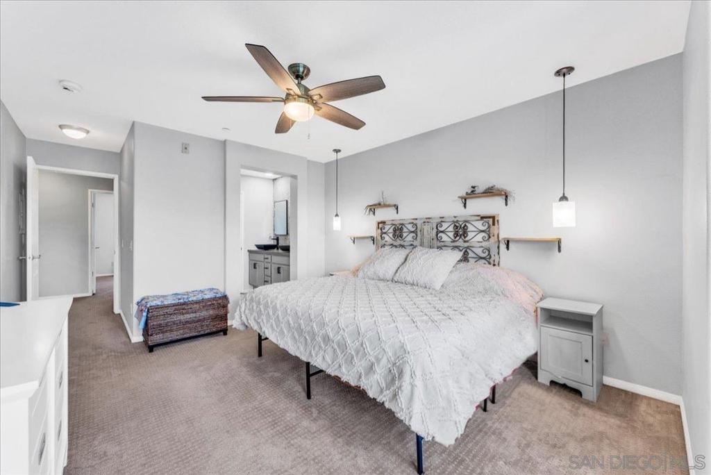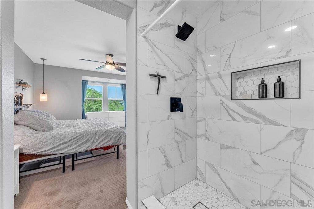 Experience this stunning 3-bedroom, 3.5-bathroom townhome in the highly sought-after Treviso Santee community. This rare Plan 4 unit is perfectly located at the back of the complex, offering exceptional privacy. The bright, open interior has been beautifully updated and features a modern kitchen with stainless steel appliances and elegant laminate flooring. Designed for convenience, the layout includes a first-floor bedroom with its own full bathroom. Upstairs, each bedroom has its own private full bath. The primary bedroom boasts spacious his-and-her walk-in closets and a recently renovated bathroom. Additional highlights include a whole house fan, a 2-car garage, and an extra parking spot. Don’t miss the opportunity to own this move-in ready, modern, and show-stopping home!