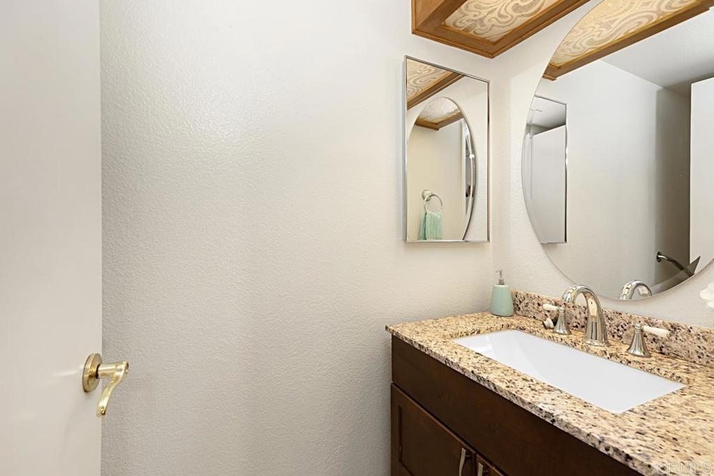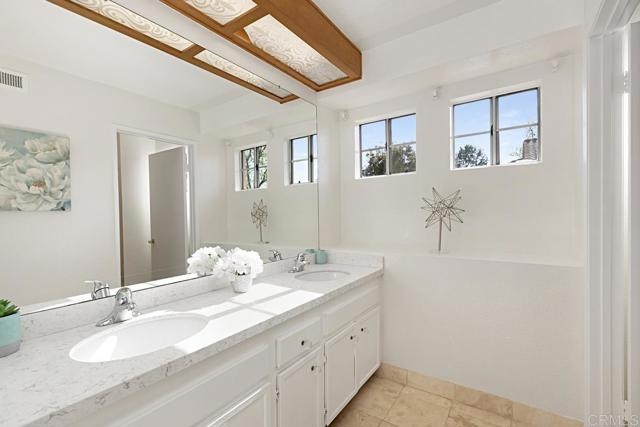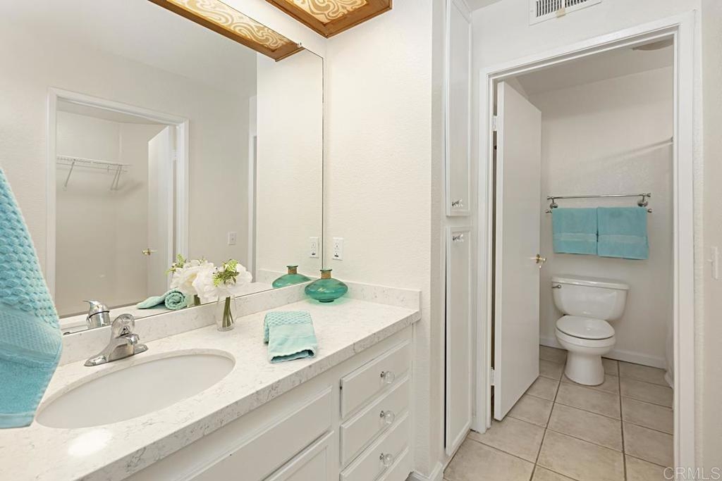 Location, Location, Location! Situated in the highly desirable Carlton Oaks area, directly across from Santee Lakes Recreation Preserve, near Mast Park, Carlton Oaks Golf Course, hiking and biking path in addition to so much more! You will be stunned to walk in and see the soaring, cathedral ceilings! The many windows let in lots of natural light. There's a gas fireplace for these chilly days and the well-appointed kitchen features stainless steel appliances, granite counter tops and beautiful cabinets. There's a breakfast bar and dining room in this open concept layout. Through the sliding glass doors is your completely private and fenced in patio yard which is ideal for the pets. Unloading the car in your direct access garage is super convenient too! There's a half bath on this floor as well. Upstairs there are 2 primary suites both with vaulted ceilings, walk in closets and attached bathrooms. One is larger with double sinks in the vanity, while the other primary suite has a private balcony. Don't miss an opportunity to live in this fantastic setting! Easy access too, close to highways 52 and 125.