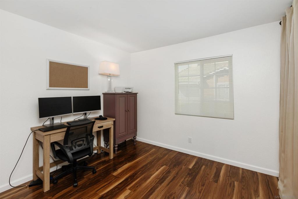 This stunning condo has been completely remodeled! The end unit feels like a Townhome - no one above or below. The open kitchen has quartz countertops, newer appliances, ample counter space. Solid surface floors throughout. The dual pane windows hold in the freshness of the central AC. Host gatherings in your private outdoor space or at the Clubhouse, Pool and Spa. Included is a detached garage plus an assigned parking space. VA & FHA approved community.