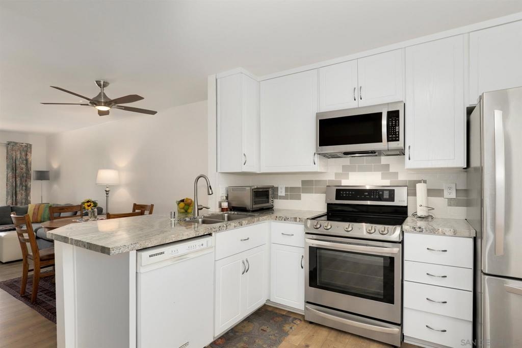 Light and bright two-story condo with a large fenced-in back patio/yard and 1-car carport parking space with storage! This beautiful open flowing condo features wide plank wood laminate flooring throughout the first floor, a living room, dining area with ceiling fan, and updated kitchen with white cabinetry, granite counters, SS appliances, custom tile backsplash, a pantry, and slider out to the patio! Both bedrooms and bathroom located upstairs. Lots of street parking plus community laundry! Complex Features: , Other Fees: 0 Sewer: Sewer Connected Topography: LL