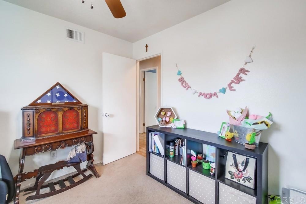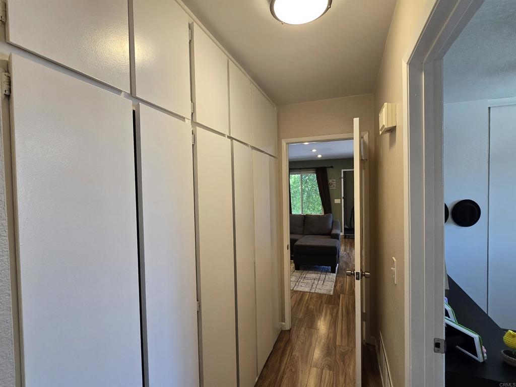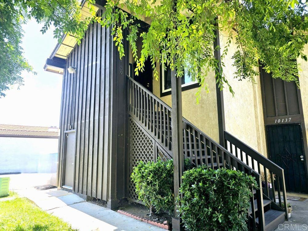 This home is very centrally located in a well established neighborhood of Santee. Close to all shopping, food, Starbucks, Hiking trails, Santee Lakes and the Santee sports complex. You will find convenience, affordability and location in this gem of a Condo. This beautiful 3 bed 1 bath condo has been lovingly cared for by it's current owners and you see it when you step into this great home. The gally kitchen highlights granite counters and beautifully maintained oak cabinets. Gorgeous laminate wood flooring shines in the living area. Designer interior paint throughout, including the spacious primary bedroom. This is an upstairs end unit where you only share one wall and there is no one below you! This unit includes a shared garage with plenty of storage. The parking offers ample spaces, no need to park a block away, get front and center of your unit. Enjoy the luxury of hand washing your car on premises. Best of all you get front row seats for the spectacular Santee fireworks show while relaxing on your own private balcony! Walking distance to Starbucks, Pizza, Taco's, Hawaiian food, Pho, Nail spa for self care, Smart and Final for groceries! Santana High School is near by as well as Woodglen Vista park. Enjoy the pool in the summer and walk across the street to Starlight Circle to tour the Christmas lights in the winter! There are so many thing to love about this condo and it's location! Let's make it yours.