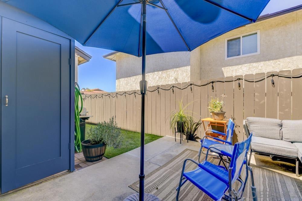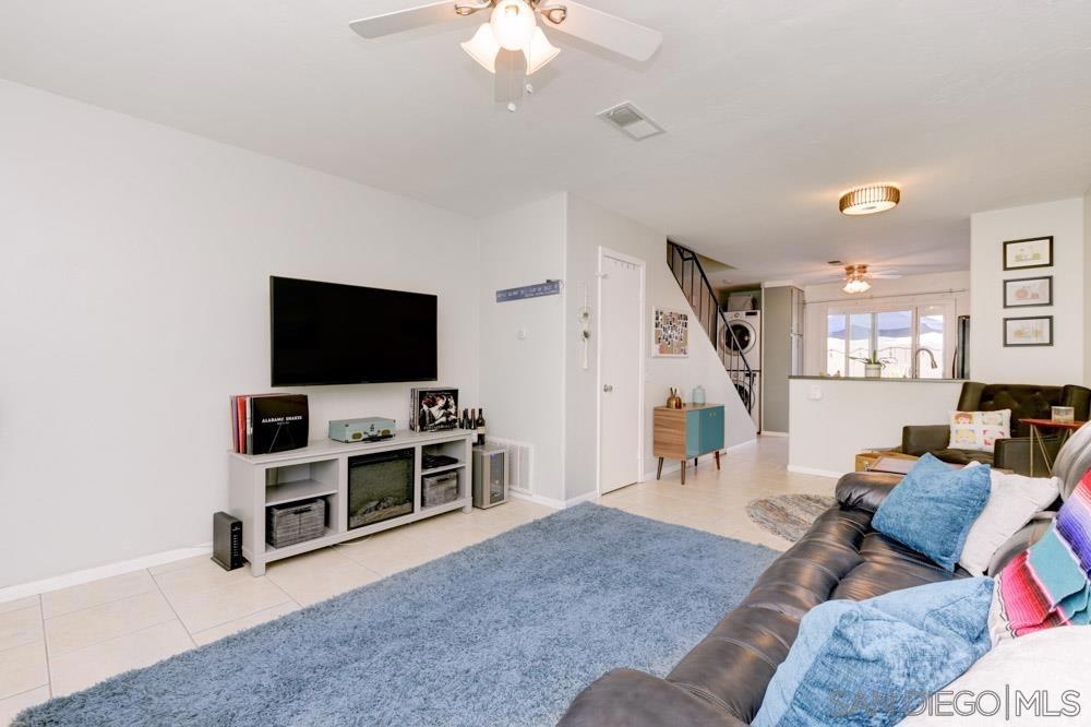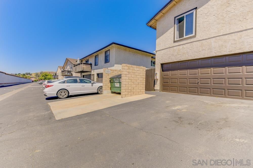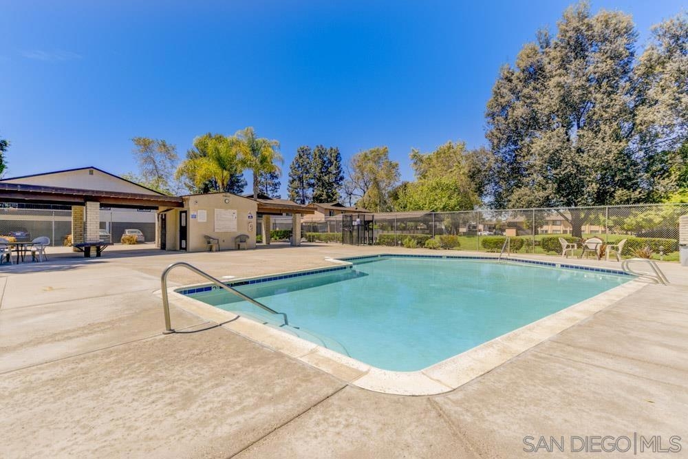 Beautiful Updated 2 story condo in the Heart of Santee. Home has been nicely updated with painted cabinet, and matching black appliances. Bathroom updated with accent tiles, a new vanity, tiled shower/ tub combo. Large patio with shed and artificial turf. Perfect for relaxing. Tile flooring downstairs and in the bathroom, carpet upstairs in the bedrooms. Stackable washer and dryer inside the unit. Pet door, window treatments, ceiling fans, newer windows and slider, too many upgrades to list. Unit does come with a shared 1 car garage, second designated parking spot, tons of street and guest parking. Community features a parklike setting, open spaces for children and pets, pool. This is a must see property! Complex Features: ,,, Equipment: Dryer, Shed(s), Washer Other Fees: 0 Sewer: Sewer Connected Topography: LL