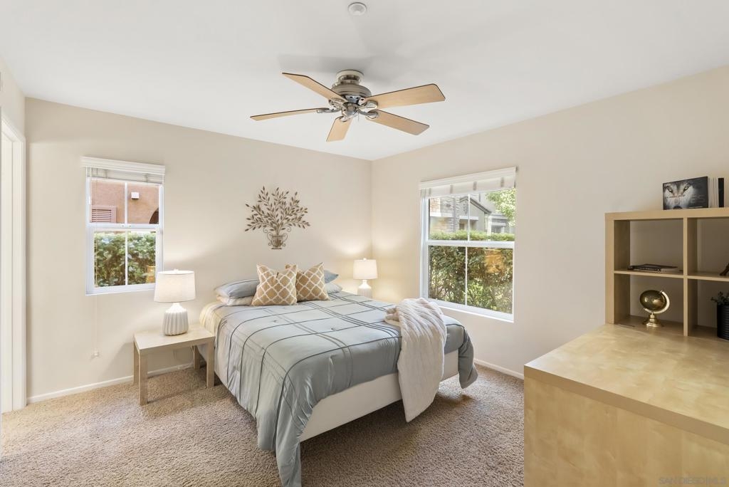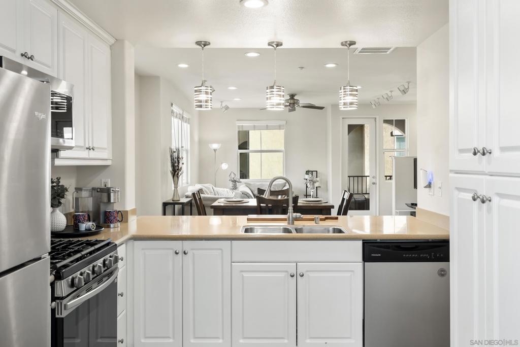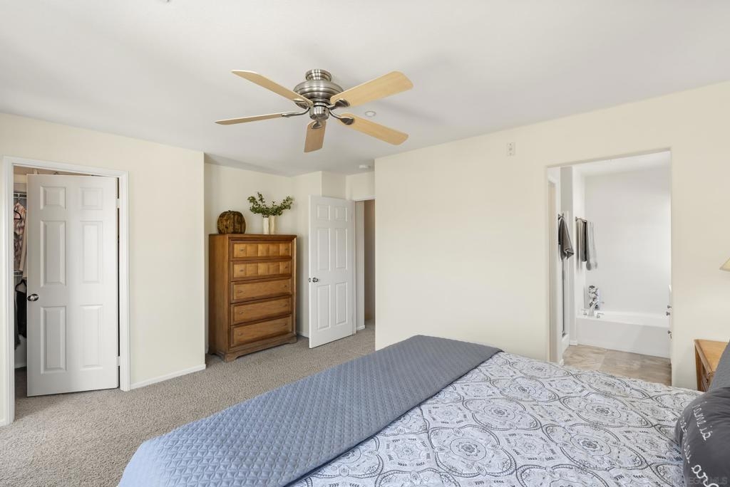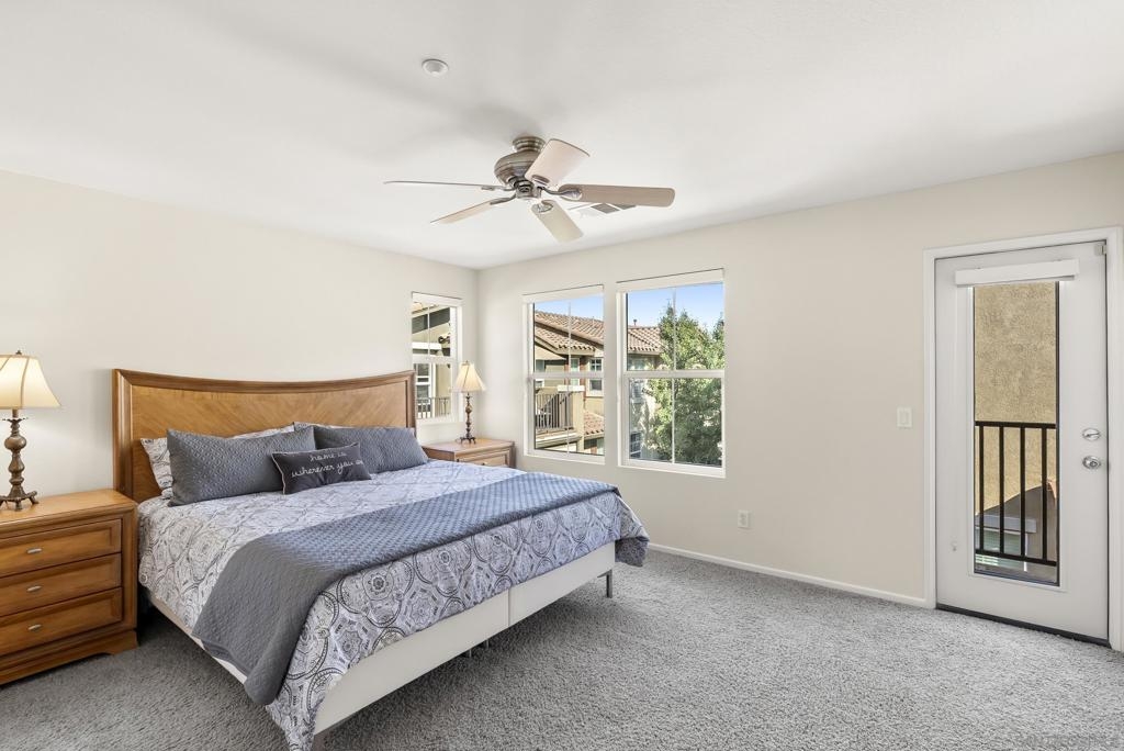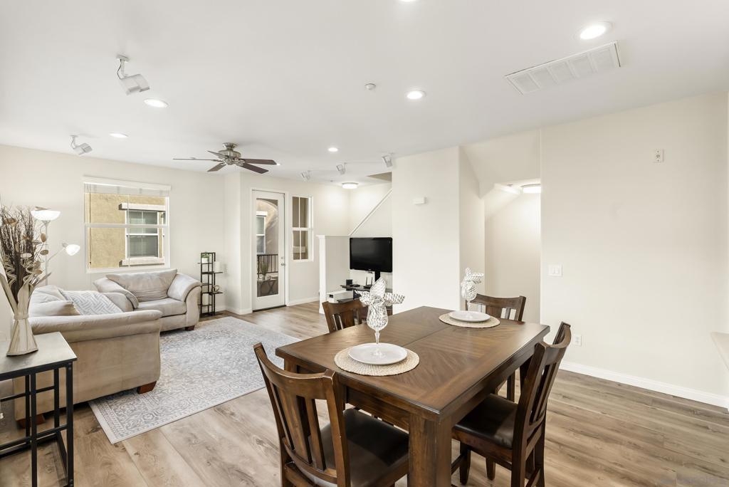 Welcome home to a peaceful and thoughtfully designed townhome in the Morningside Villa Community of Santee. This contemporary tri-level offers 4 bedrooms and 4 bathrooms along with an open plan living/dining area on the main floor. Move-in ready, with fresh paint, updated hardwood flooring, master tiling and recessed lighting. Quiet end unit boasts additional windows, providing extra light and cross-breeze. Enjoy a versatile, first level bedroom and en-suite bath. Entertain with ease in the open-plan second level, where the kitchen, dining, living room and covered balcony flow seamlessly into one another. The cheery kitchen extension can be used as a breakfast nook, another office or a nice spot to kick up your feet and read. Another generously sized bedroom and bath are nestled into the corner on this floor. Enjoy your own retreat in the upstairs primary suite which includes a private balcony, walk in closet, luxurious soaking tub, separate shower and dual sinks. An additional bright bedroom on this floor is also en suite. Attached two-car garage, lower level laundry room, updated appliances and ceiling fans in every room add to the convenience and comfort of this beautiful home. Residents enjoy access to community amenities such as a sparkling pool, spa, picnic and BBQ area, and children's play equipment. With its scenic surroundings and well-maintained facilities, Morningside Villa is a place you'll love to come home to!