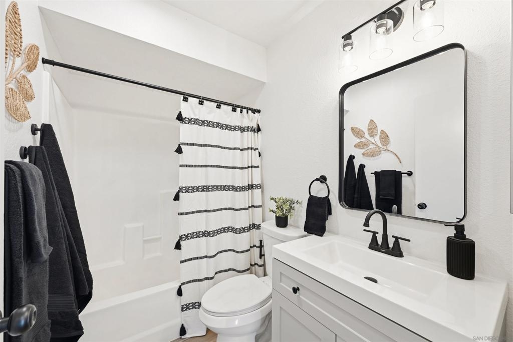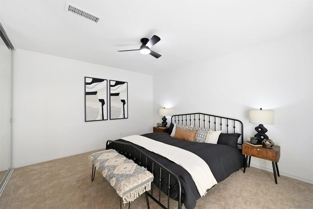 Welcome to 10219 Kerrigan St, a beautifully recently remodeled 3-bedroom, 2.5-bath end unit townhome offering 1,268 sq ft of comfortable living in the heart of Santee. This two-story home features tile and new vinyl flooring on the main level, plush new carpet upstairs, central heat and air, and a convenient downstairs half bath for guests. The functional layout includes in-home laundry and an assigned two-car garage with ample storage. Upstairs, the primary suite opens to a private balcony with scenic foothill views—perfect for morning coffee or winding down at sunset. Enjoy an expansive private patio ideal for entertaining or relaxing outdoors. The well-maintained community offers two pools, playgrounds, and lush greenbelt areas. Located near Santee Lakes, Mission Trails, shopping at Trolley Square, and with easy access to Highways 52 and 125, this move-in ready home offers comfort, convenience, and the best of the Santee lifestyle.