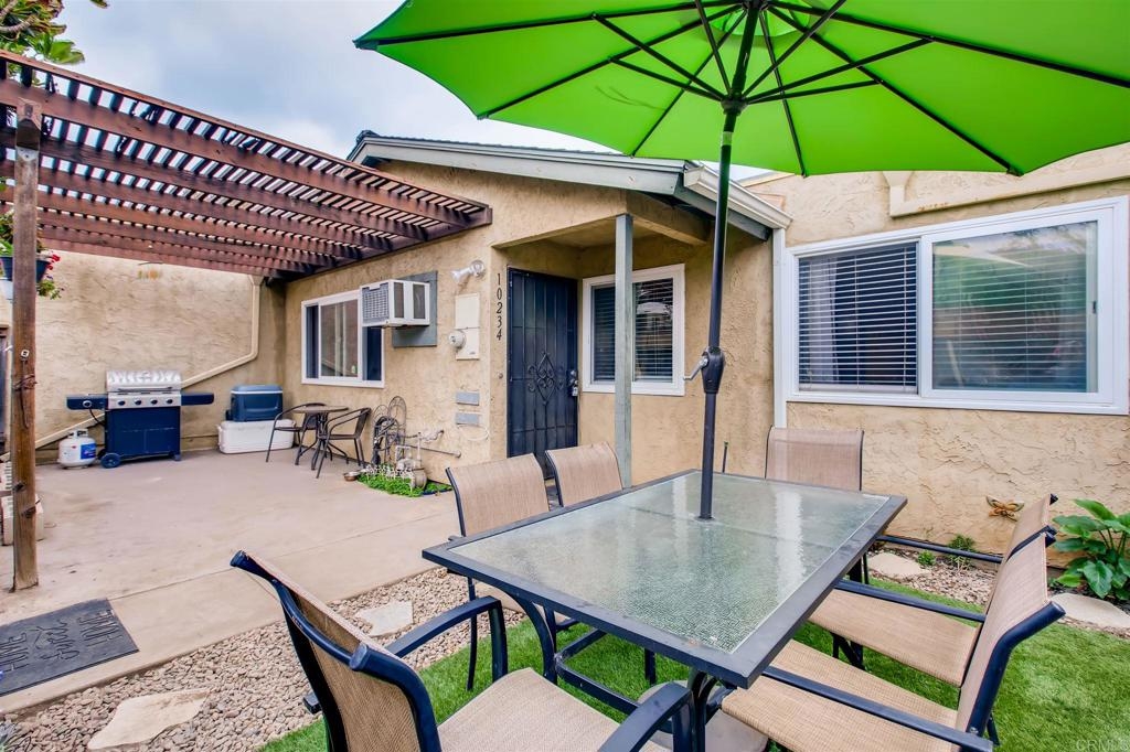 This nicely maintained, freshly painted, single story, with no one above you home, features 2 bedrooms and 1 full bathroom. It comes with an attached 1 car garage that has direct access to the home and 1 additional assigned parking spot. Enjoy the fenced in yard and covered patio, great for relaxing or entertaining. Newer windows, tile and laminate wood flooring throughout. Washer, dryer and all the stainless steel kitchen appliances are being included. This highly desirable community also features 2 pools and multiple play ground areas. Conveniently located close to schools, shopping, hiking trails, a dog park, city parks, restaurants, a drive in movie theater and Santee Lake. Professional photos coming soon!