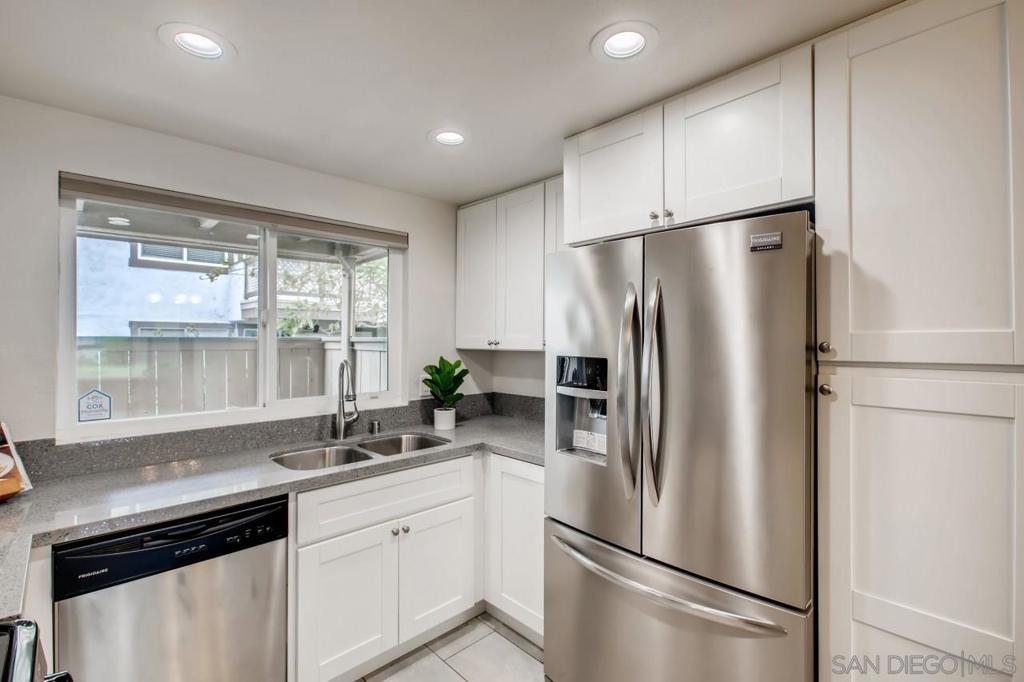 This condo is a must see! It is beautifully updated with 2 bedrooms 1.5 baths. The ground level unit features a private patio, 1 car detached garage, and an additional parking space. As you enter the home through the private patio, you are welcomed by a relaxing shaded space to enjoy year-round. The home features laminate flooring in the open living room and dining room, an updated kitchen with quartz countertops, stainless steel appliances, recessed lighting and shaker style cabinetry. See Supplement for more information. The spacious primary bedroom has newer carpet, large closet and an attached full bathroom with updated vanity. The in-unit laundry closet is spacious enough for full size washer and dryer. Dual pane windows throughout and recently installed energy efficient window coverings add light and privacy to the home. The gated community features dedicated car wash area, pools and tot lots. Just a short distance to schools, shops, parks and more! Complex Features: , Sewer: Sewer Available Topography: LL