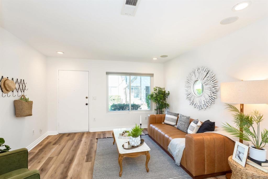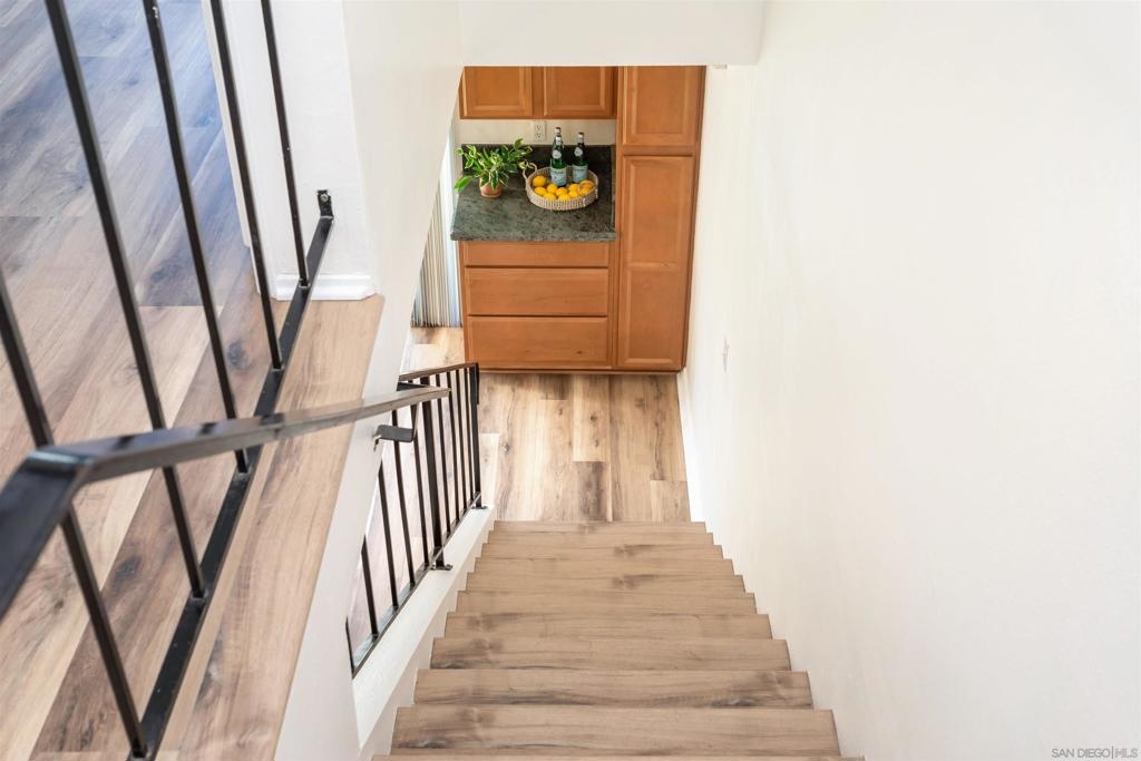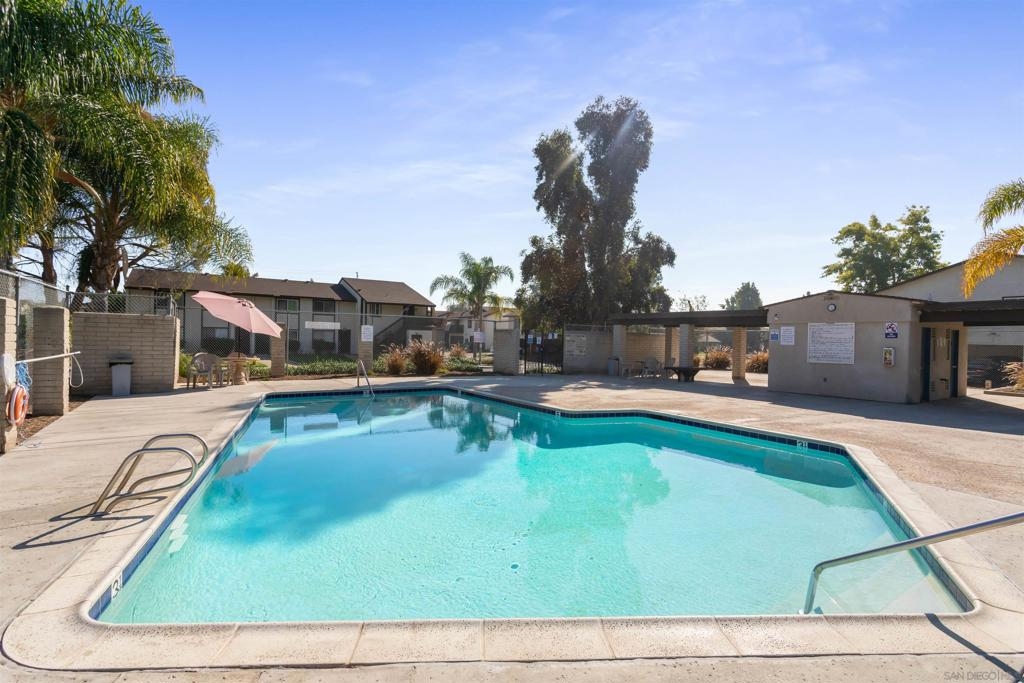 Turnkey, 2 Bedroom, 1 Bath Condominium in centrally located Santee. Open floor plan with spacious kitchen beautiful kitchen cabinets and granite countertops with direct access to the charming patio. Freshly painted and new luxury vinyl flooring installed throughout unit. 2 spacious bedrooms upstairs with large closets and ceiling fans. Unit has central heat and AC, 2 assigned parking spaces (1 in a shared garage). Community features a beautiful swimming pool and community laundry. Walking distance to Santana High School, and many convenient shops. Minutes to hiking and biking trails, and easy access to major freeways. VA & FHA approved complex and ready for immediate occupancy. Complex Features: , Sewer: Sewer Connected, Public Sewer Topography: LL